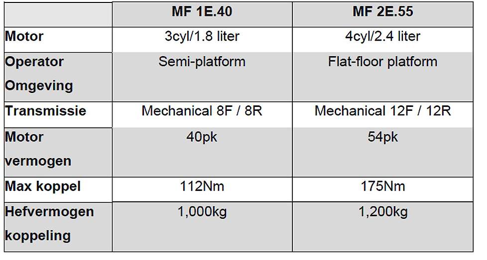 Veelzijdige en betaalbare MF 1E- en MF 2E-versies met eenvoudigere specificaties voor minder veeleisende utilitaire toepassingen