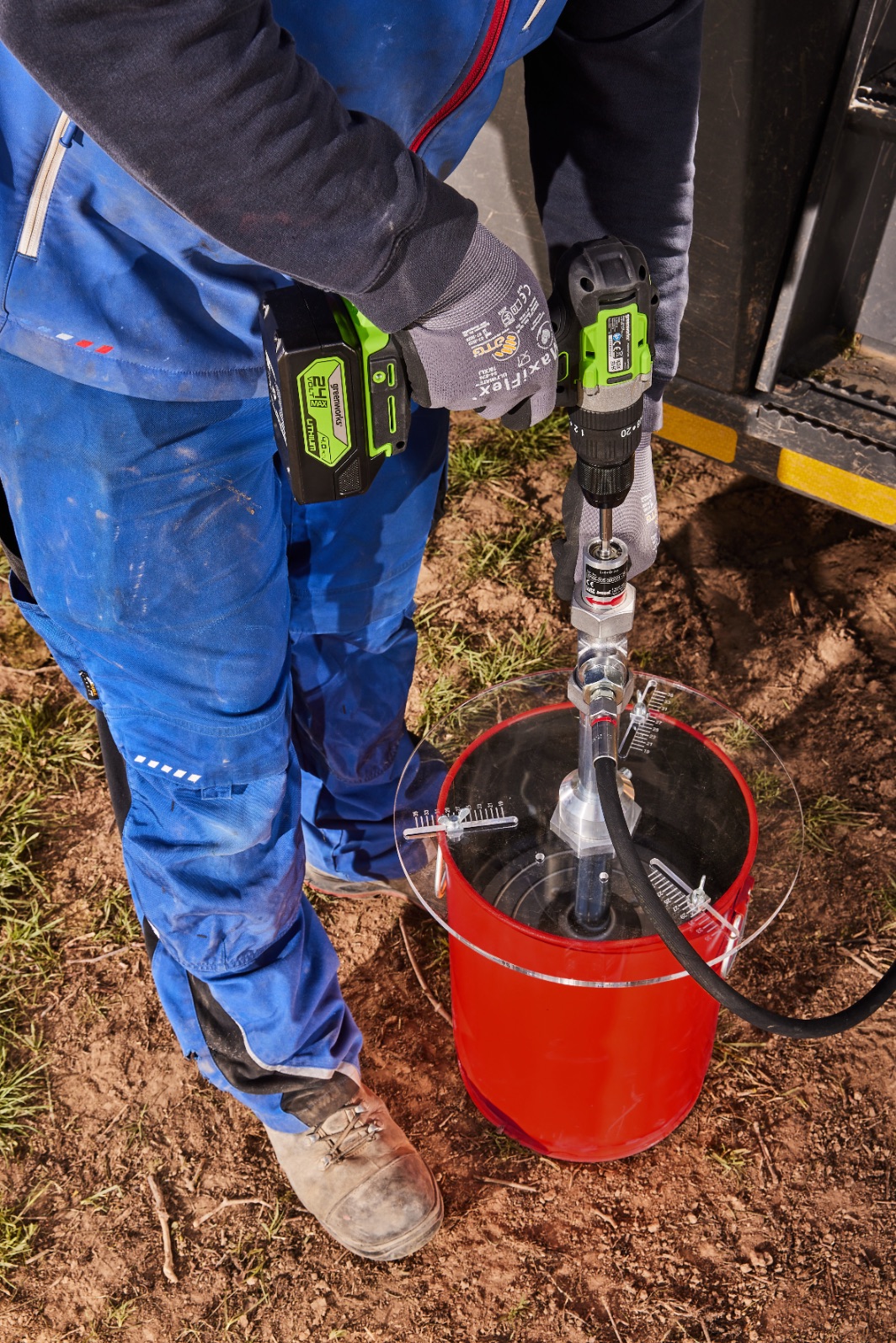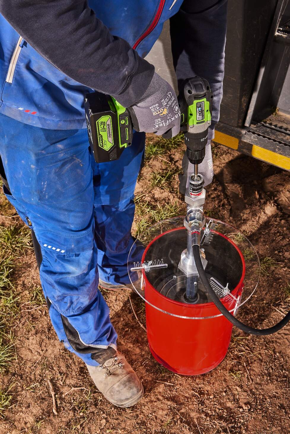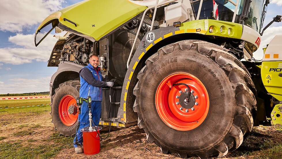 Het agrarische loonbedrijf May is daarom overgestapt op een vulgereedschap genaamd Lube Drive van Lutz Pumps. "We hebben 's werelds eerste verdringerpomp ontwikkeld die kan worden aangedreven door een standaard accuboormachine", aldus Andreas Rössler, verkoopmanager bij Lutz Pumps. Het gereedschap is geschikt voor gangbare vetcontainers en pompt tot twee kilo vet per minuut. "Het compacte ontwerp en de mogelijkheid om de pomp eenvoudig aan een accuboormachine te bevestigen, ontlasten de handen, armen en rug aanzienlijk. Dit maakt het bijvullen veel comfortabeler en vermindert de fysieke belasting", zegt Bundschuh. "Voor ons is de Lube Drive daarom niet alleen een technisch hulpmiddel, maar een echte aanwinst voor de ergonomie en het comfort op de werkplek."