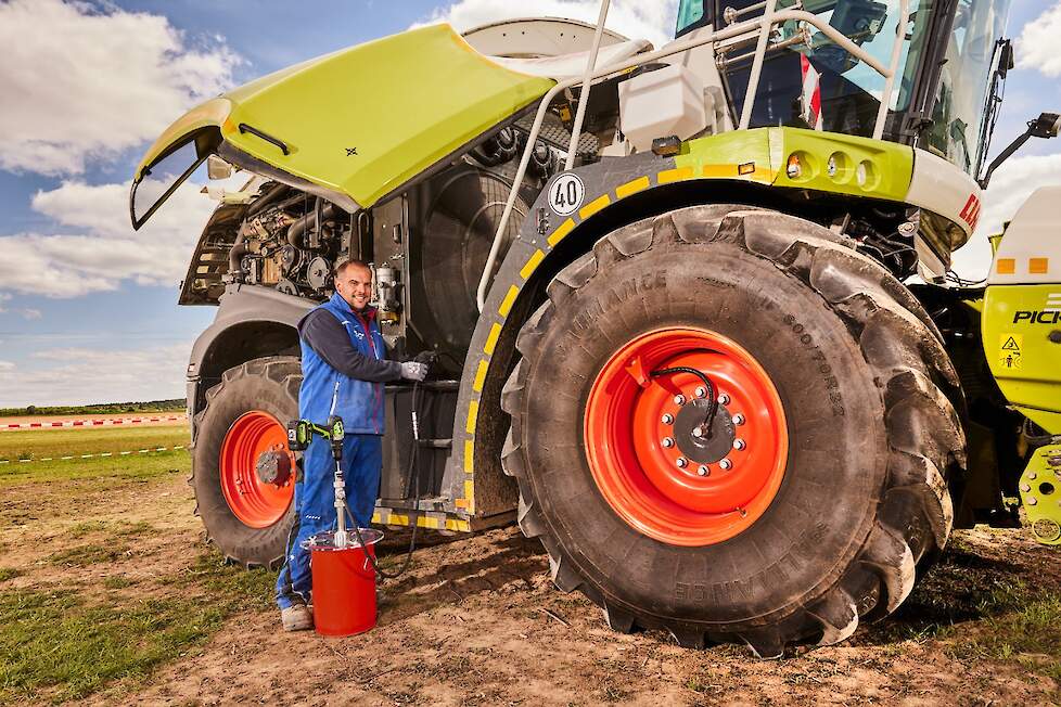 Een van de minder aantrekkelijke, maar essentiële taken in het dagelijkse werk van loonbedrijven is het smeren van tractoren, maaidorsers, ploegen, zaaimachines en cultivators. Veel bedrijven gebruiken handpompen om de centrale smeersystemen te vullen, wat na weken van herhaling kan leiden tot overbelasting van handen, polsen en onderarmen door overbelasting.