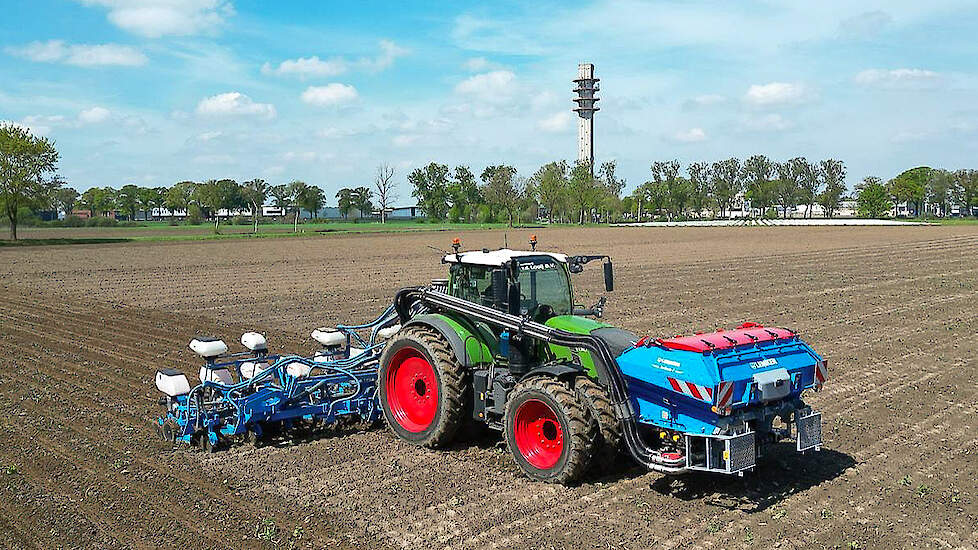 Voor het zaaien van granen gebruikt men een voorzetwoeler voor de Lemken Solitair 9 + zaaicombinatie. In de fronthef van de Fendt 724 Vario hangt dan nog een Lemken-vorenpakker. ”Op de zwaardere zandgrond is achteraf goed te merken of we met voorzetwoeler gereden hebben of niet. Dit is voor onze klanten duidelijk terug te zien in hun gewas”, vertelt Duits.