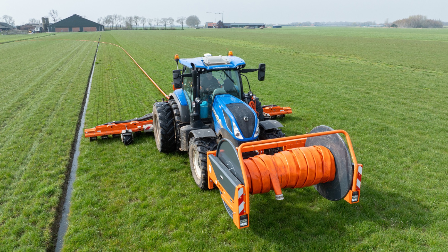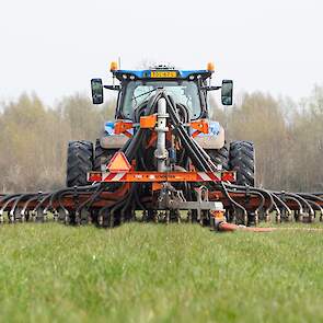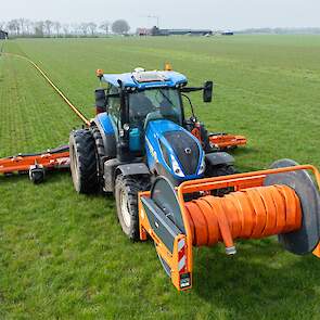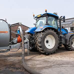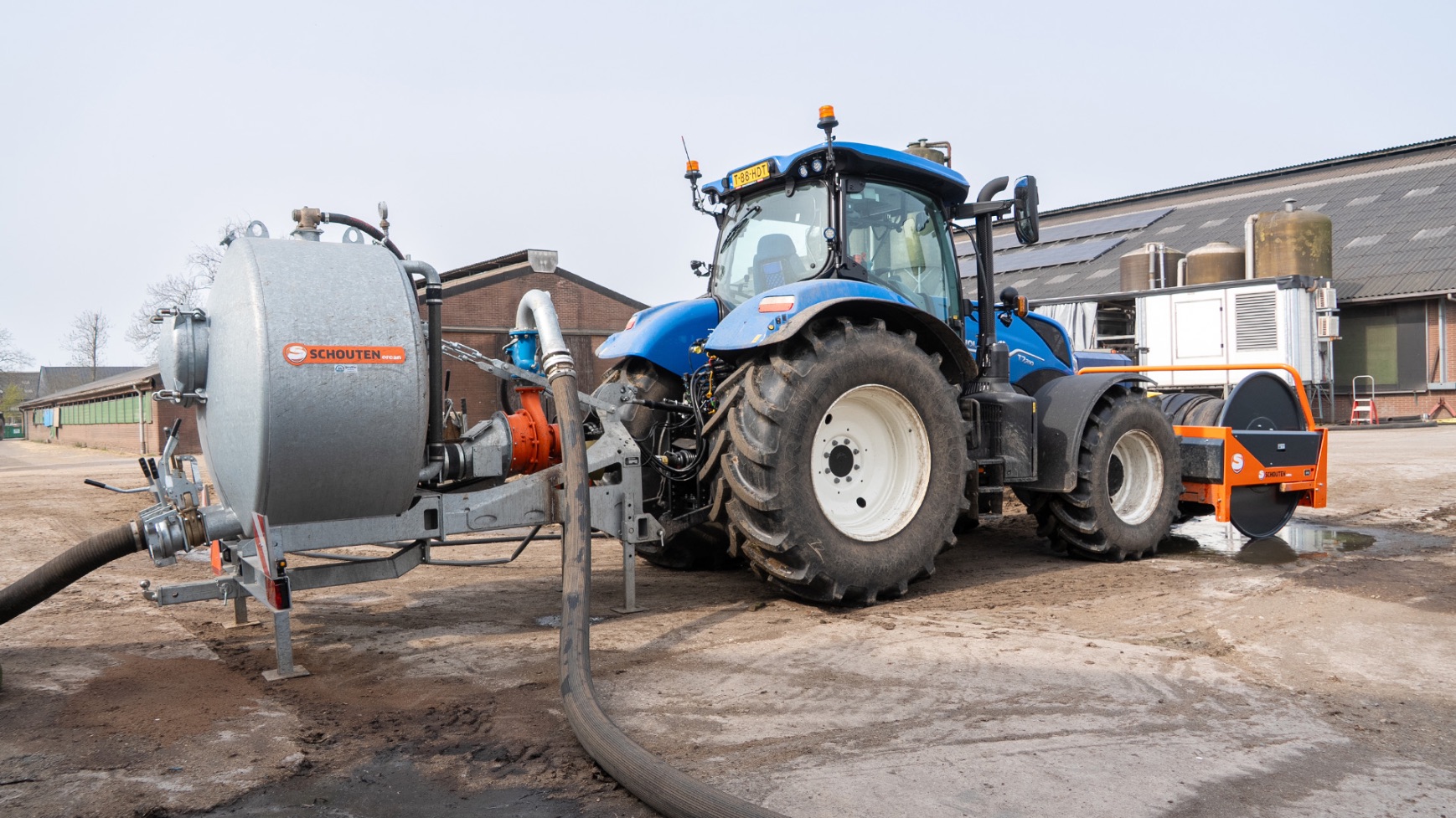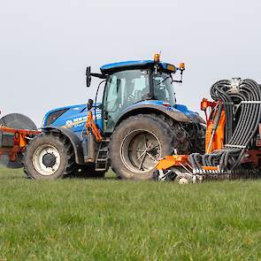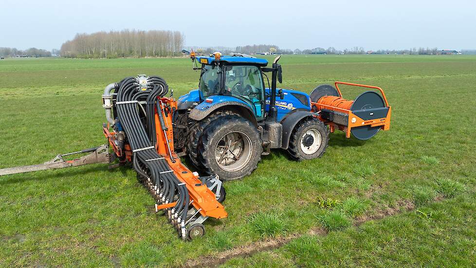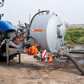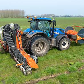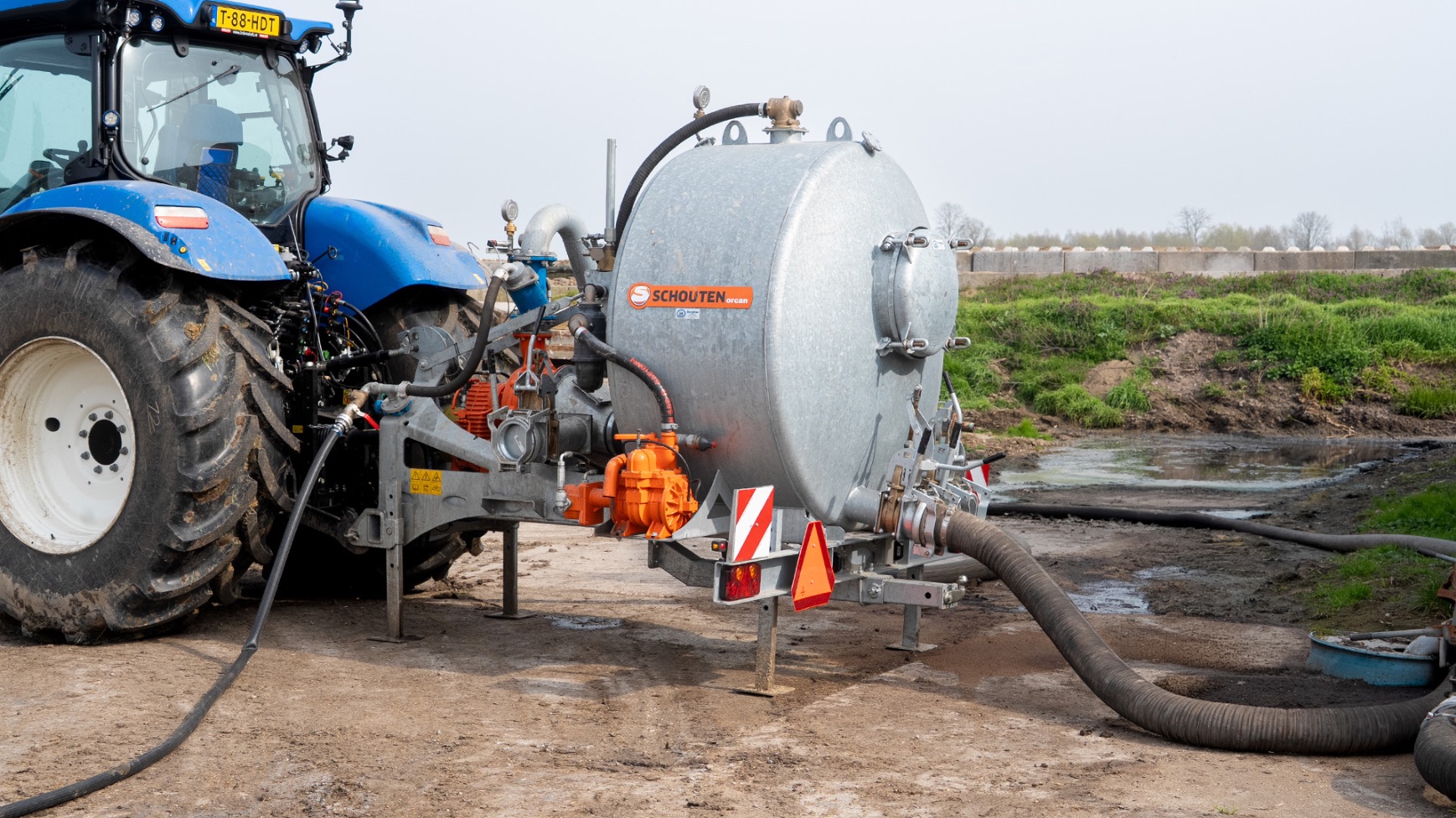 Varkenshouderij Bull aan het werk met een Schouten Spider SP8040-SS-sleepslangbemester en een Orcan PU100T-mestpomp.