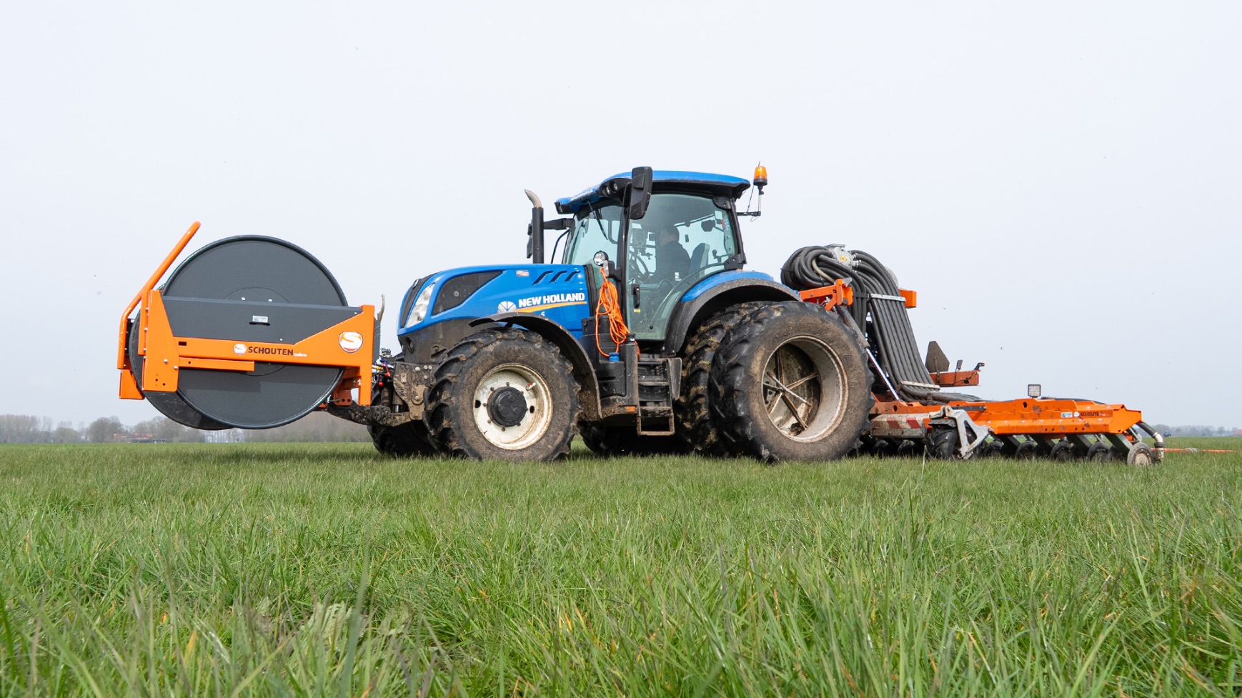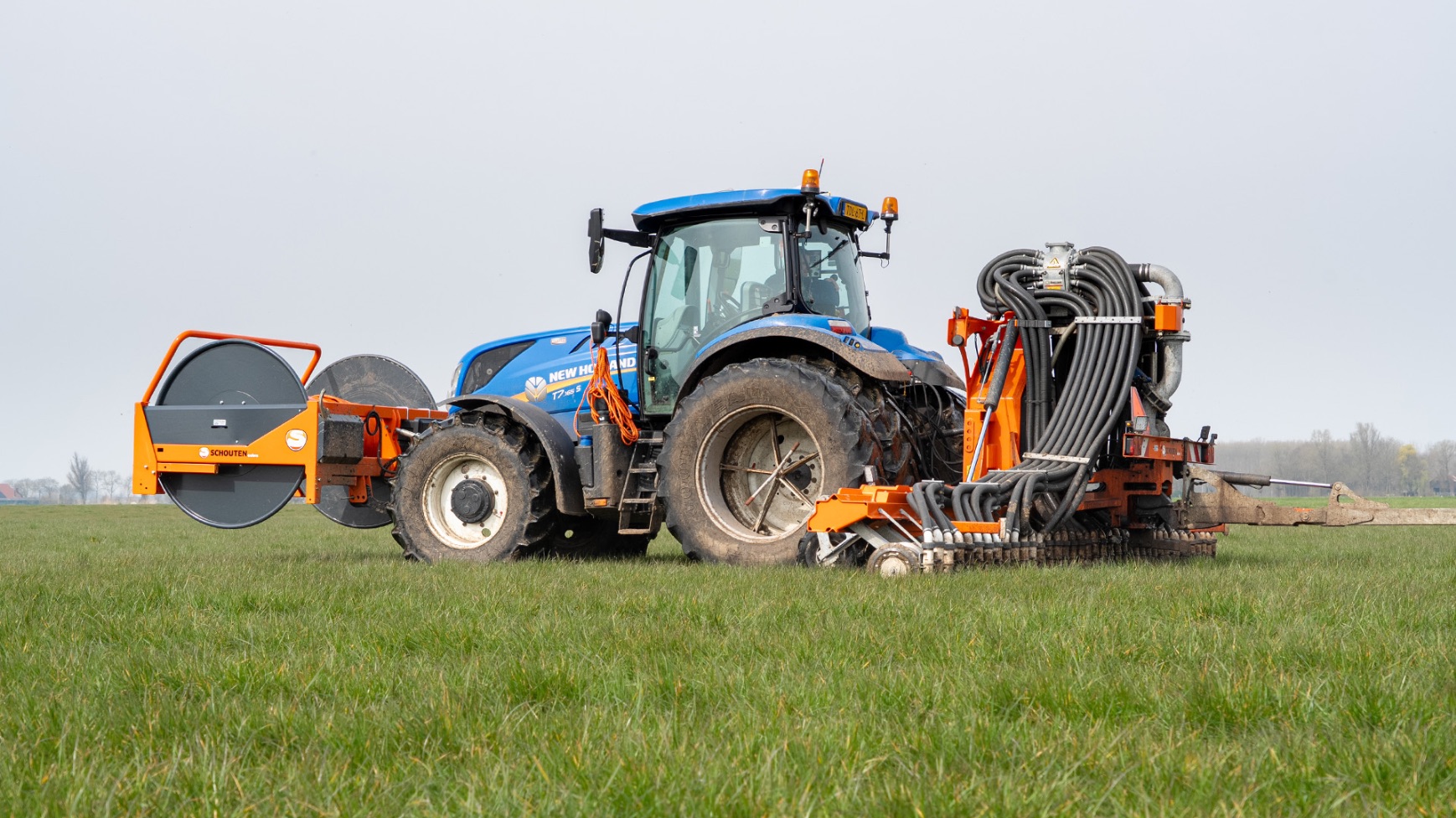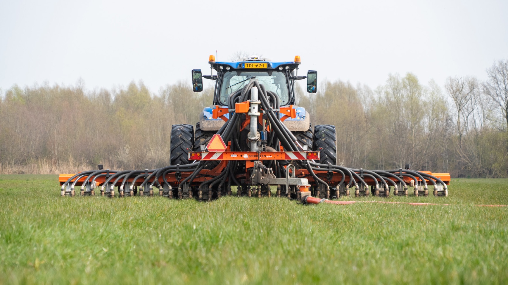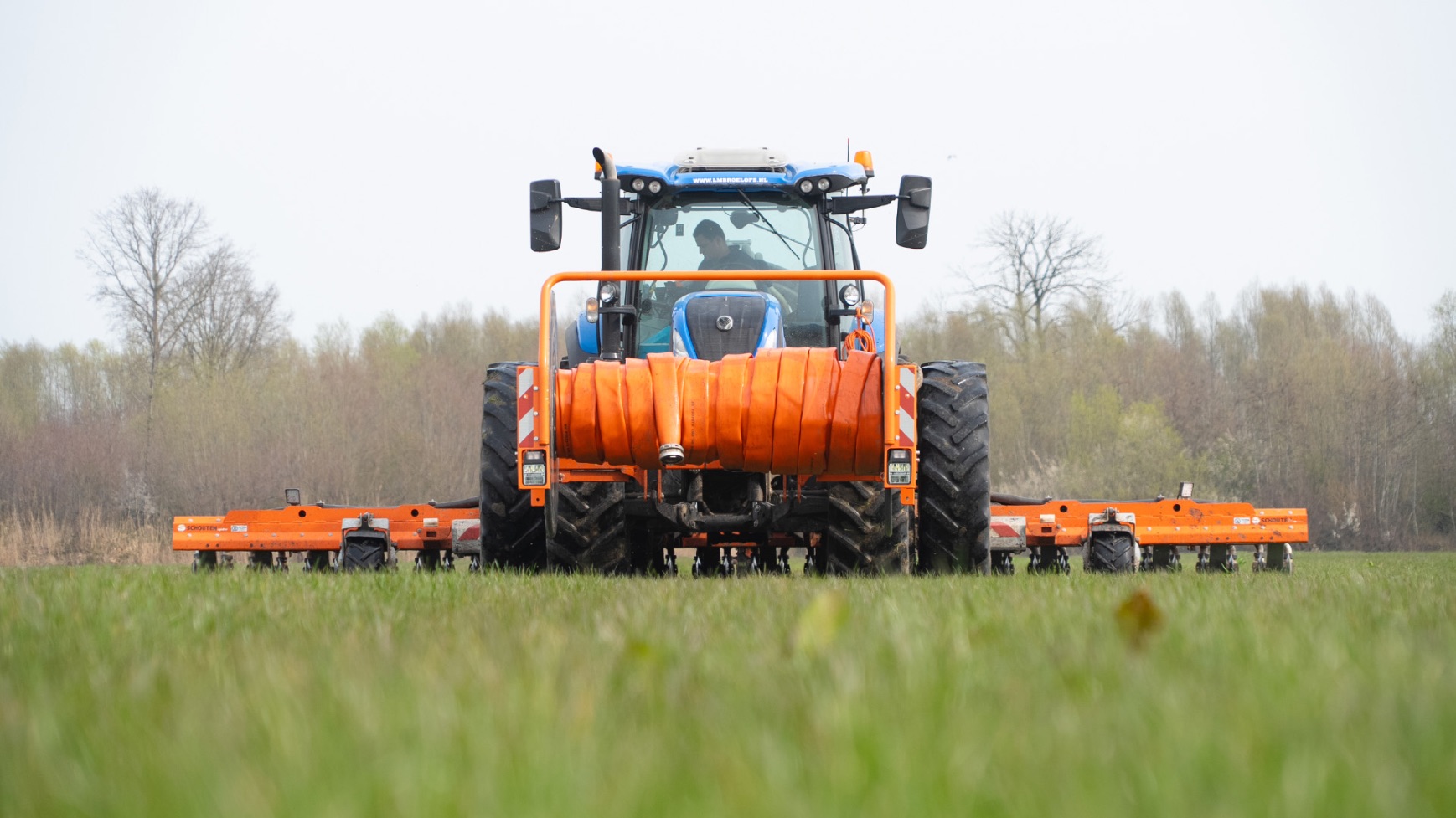 Varkenshouderij Bull aan het werk met een Schouten Spider SP8040-SS-sleepslangbemester en een Orcan PU100T-mestpomp.