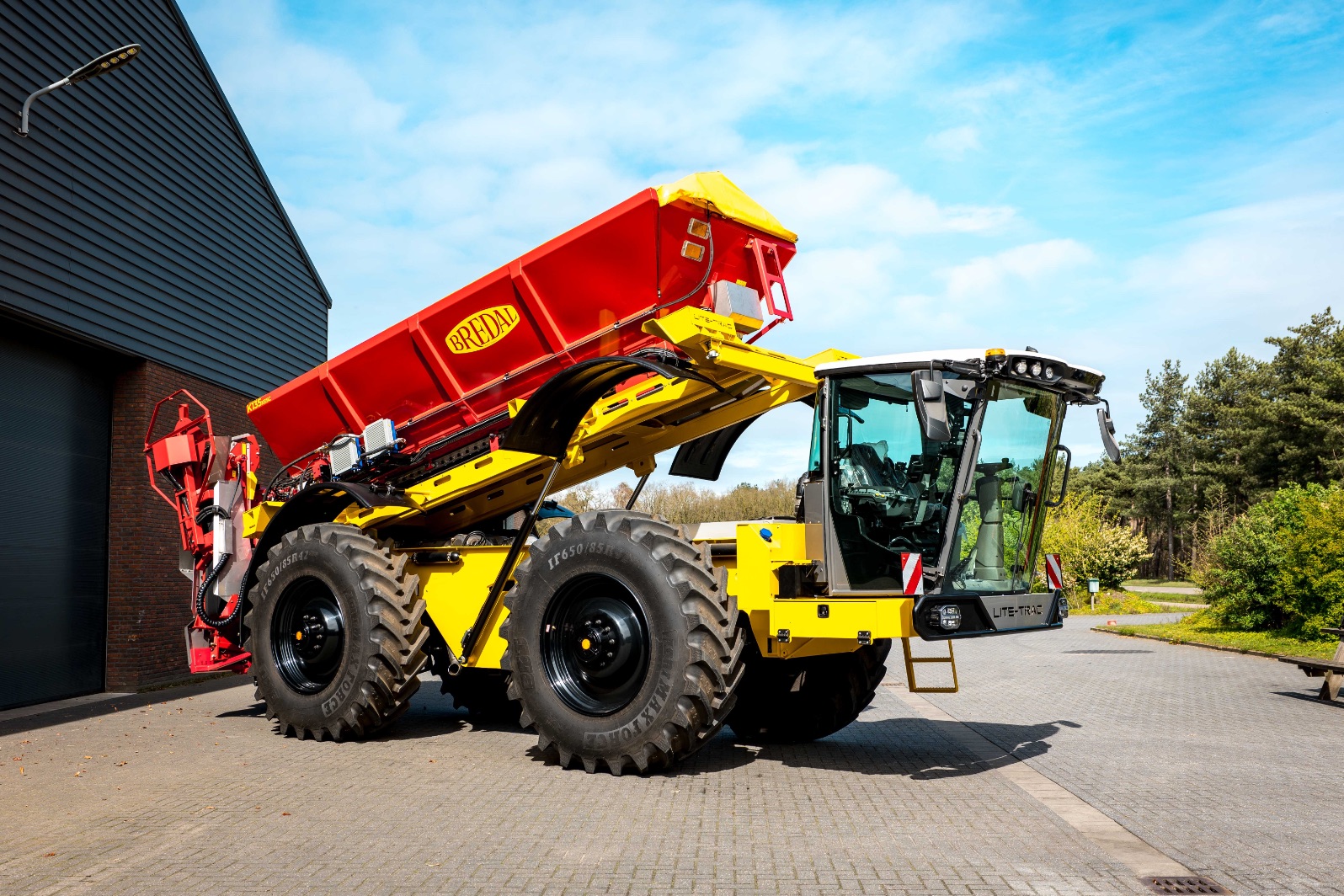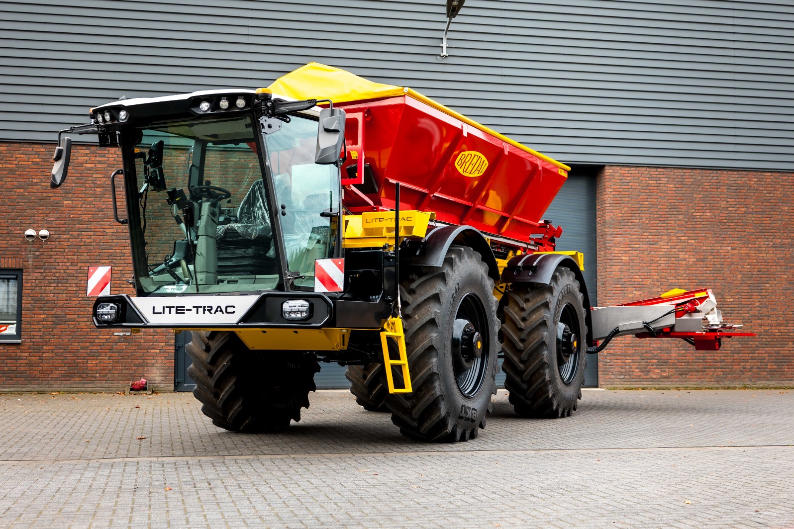 De geleverde Lite-Trac is voorzien van de nieuwste Claas X11-cabine, die garant staat voor een hoog niveau van comfort en intuïtieve bediening. Achterop is een Bredal K135 XE/SC-strooier gemonteerd met een inhoud van 9,5 m³ en een laadvermogen tot circa 13 ton. Daarmee biedt de machine een ruime capaciteit voor uiteenlopende werkzaamheden.