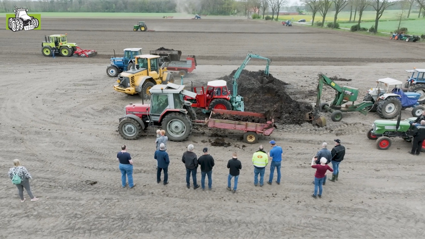 Daarna wordt alles ouderwets ondergewerkt met een cultivator of eg. Het werk vindt plaats op een perceel van 8 hectare en laat mooi zien hoe dit vroeger ging.