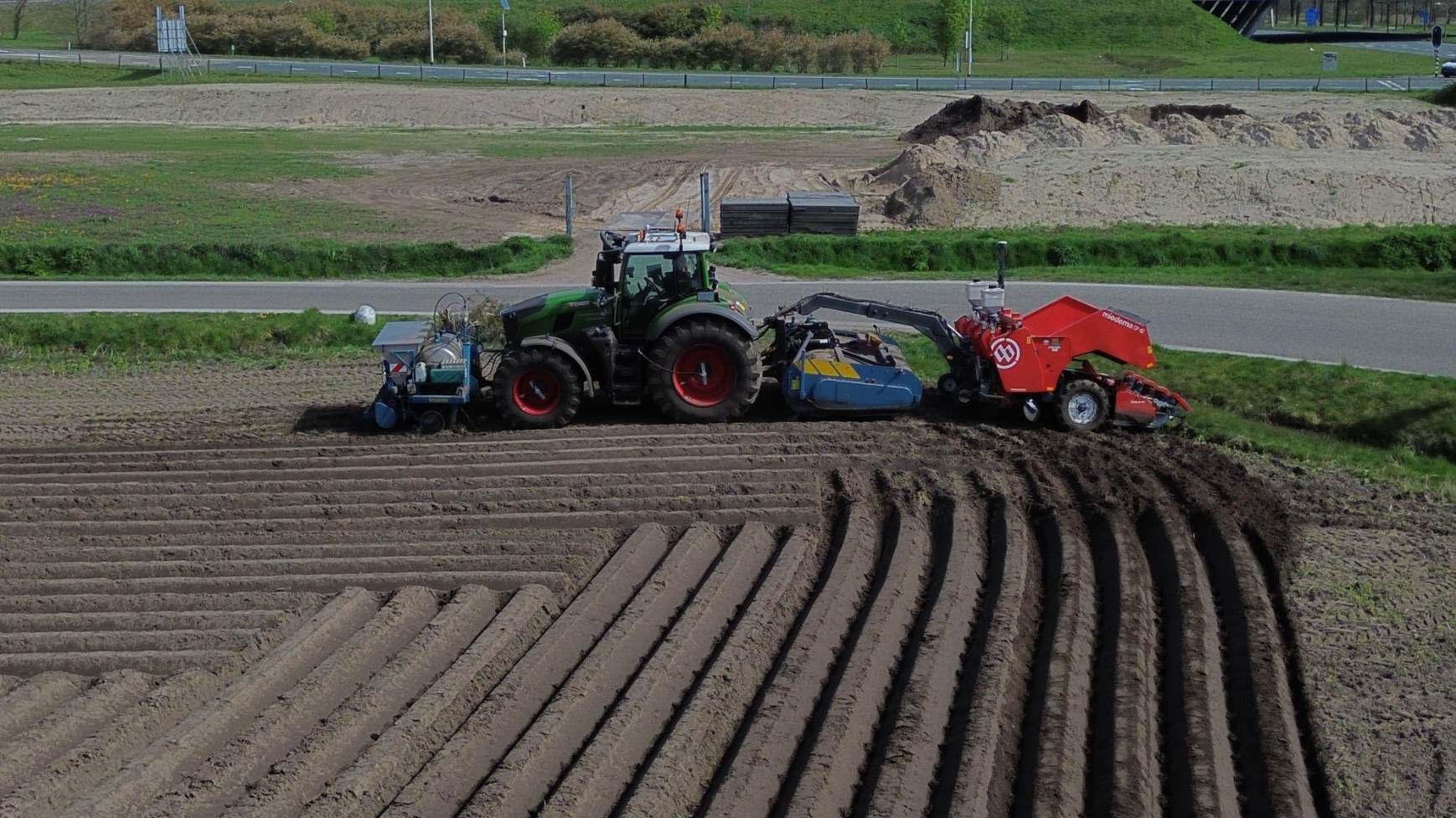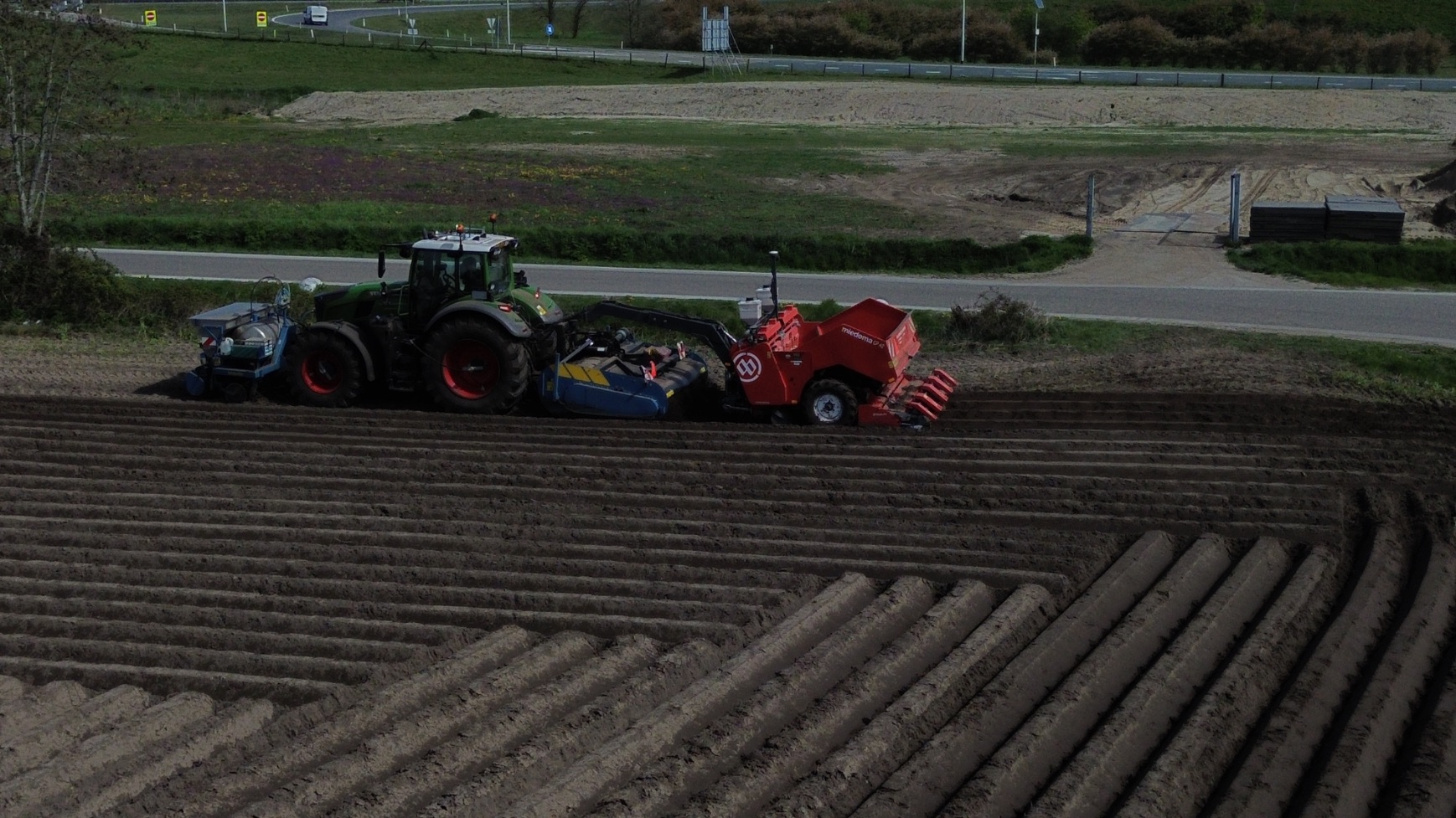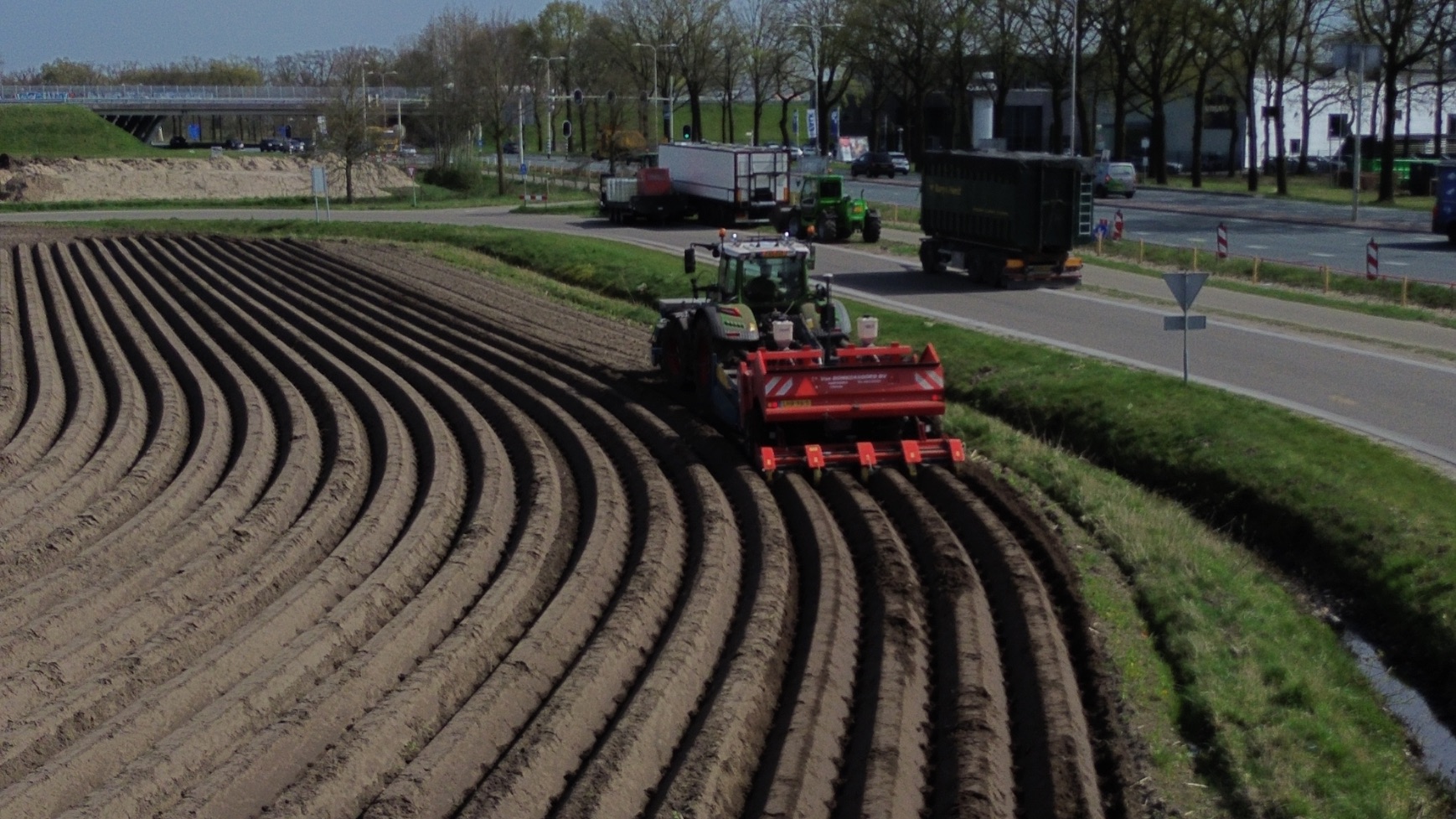 In deze video zien we Van Donkersgoed BV uit Voorthuizen bezig met piepers poten in Ede. Dit gebeurt met een Fendt 728 Vario en een Imants-voorzetwoeler, Imants 48WX-spitmachine en een Miedema CP 42-pootmachine. Voor de trailer staat een John Deere, en de pootmachine wordt geladen met een verreiker; deze zijn van 3V BV.