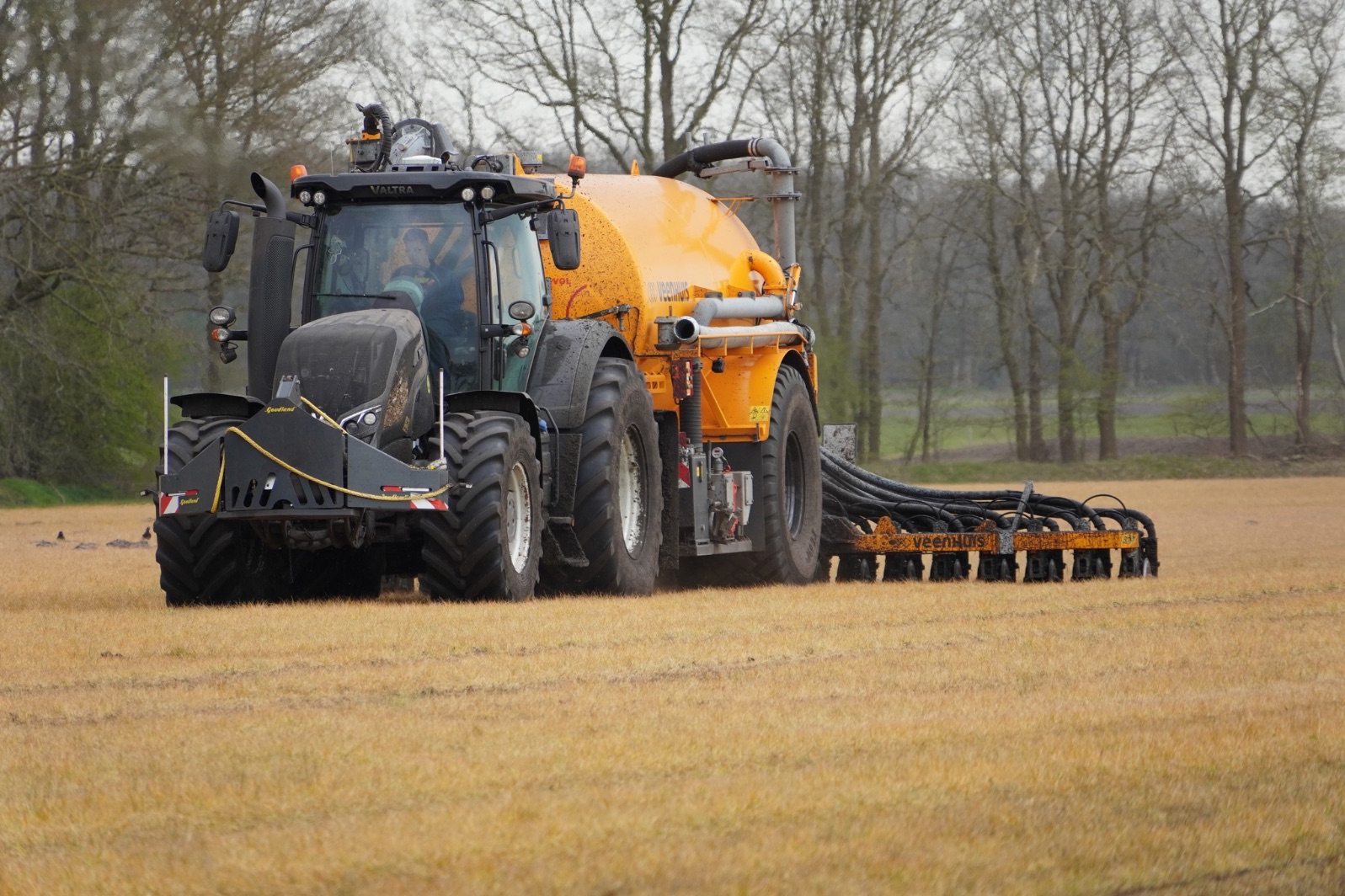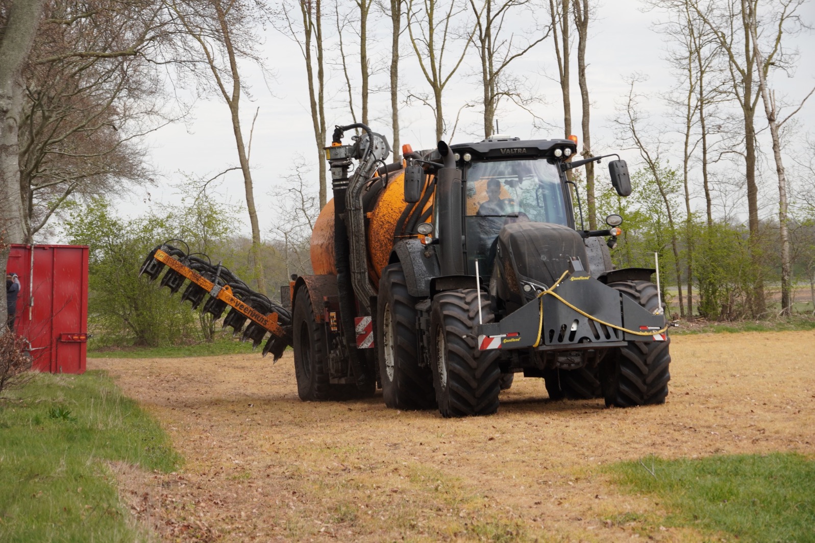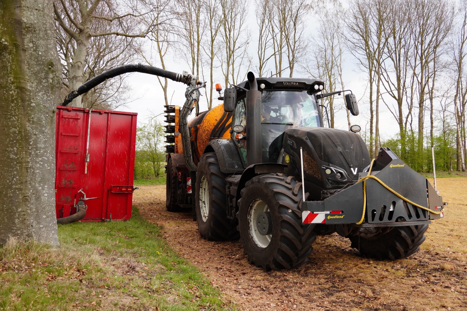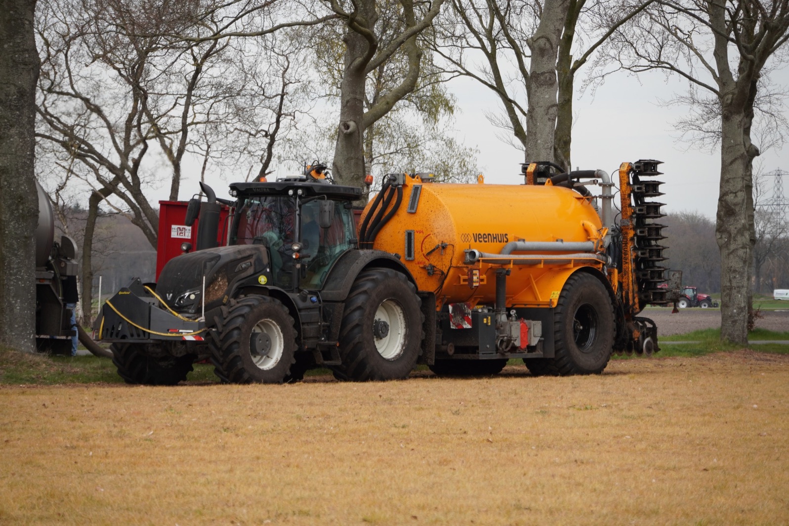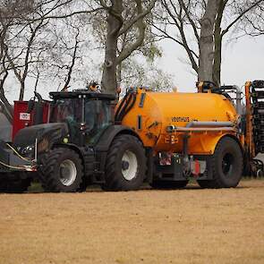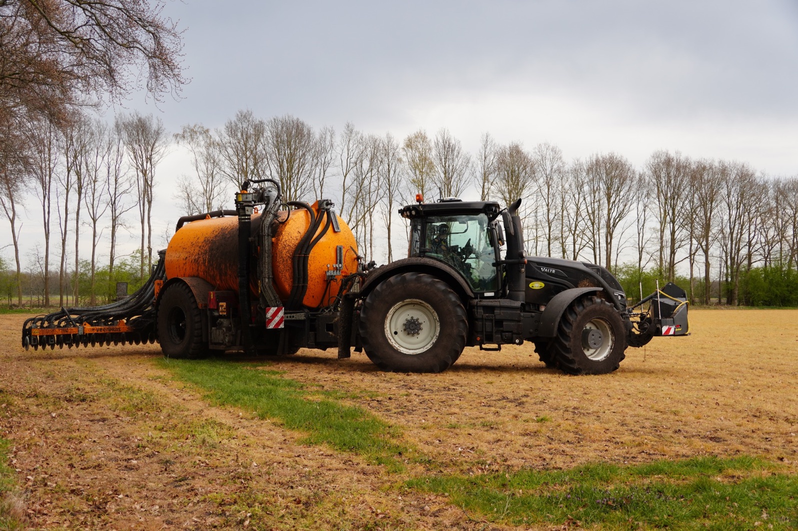 Bemesten met Valtra en daarachter een Veenhuis-tank
