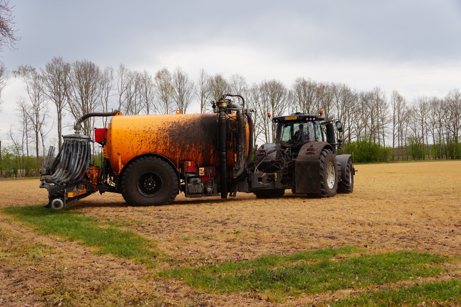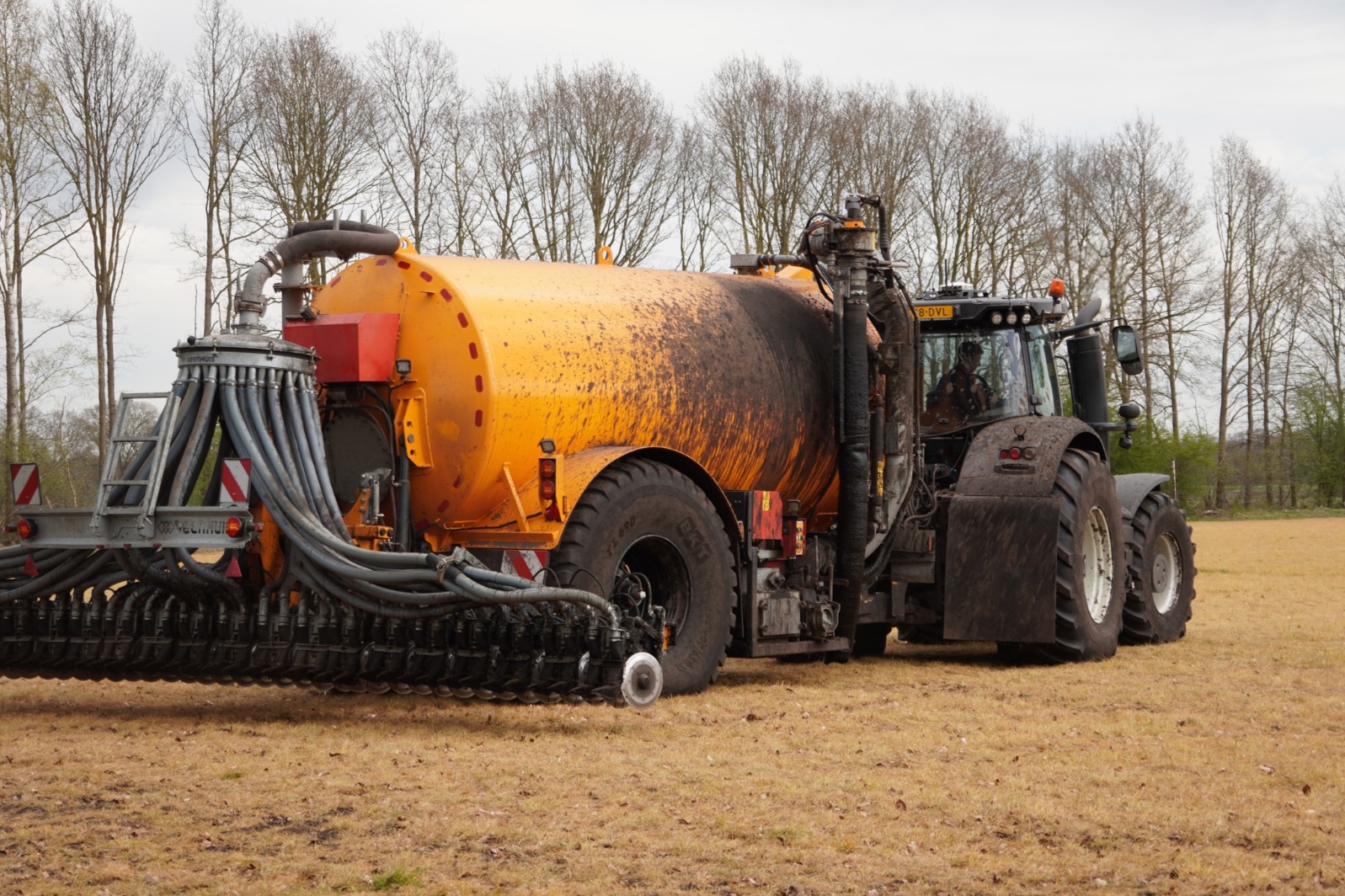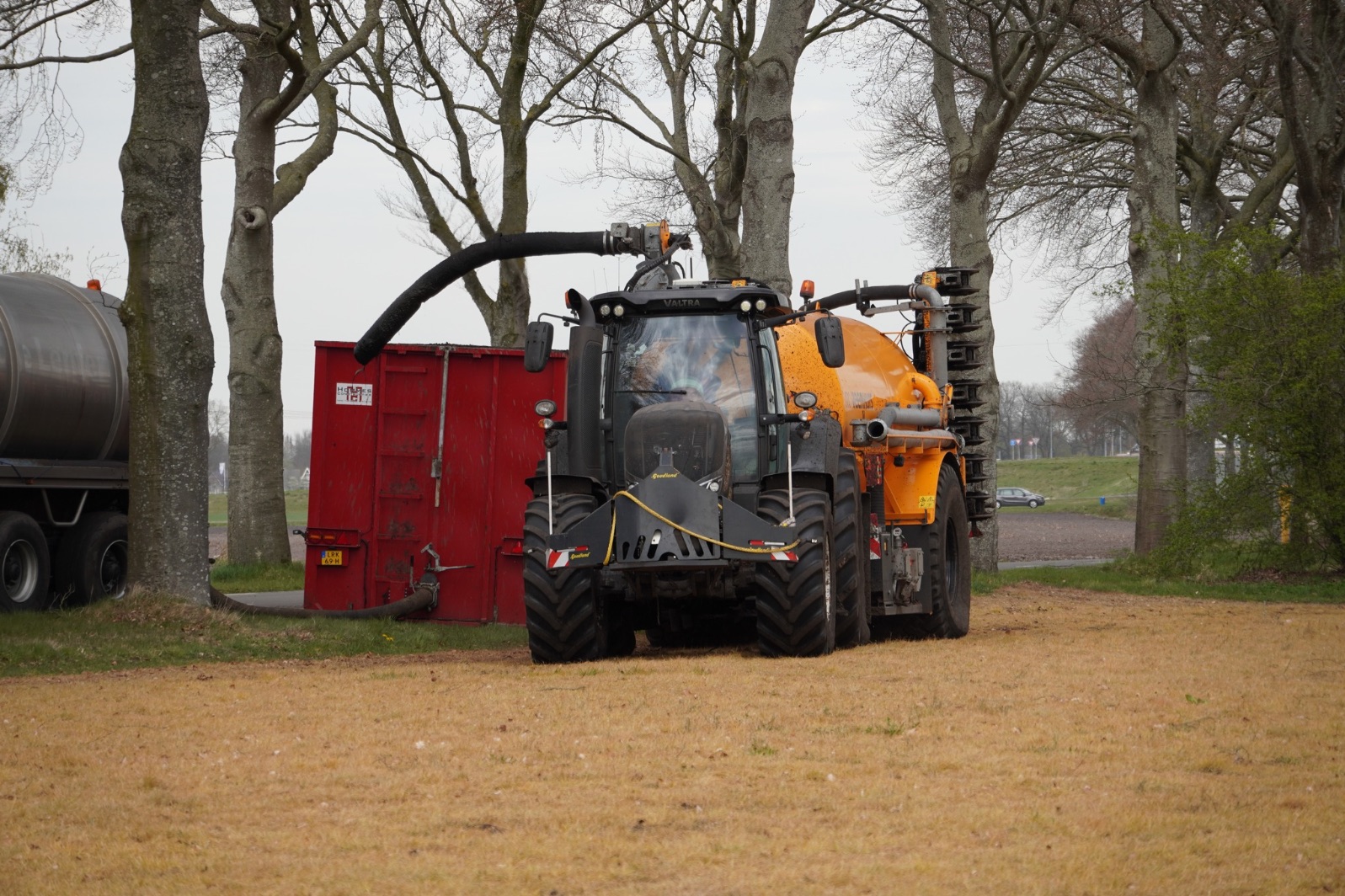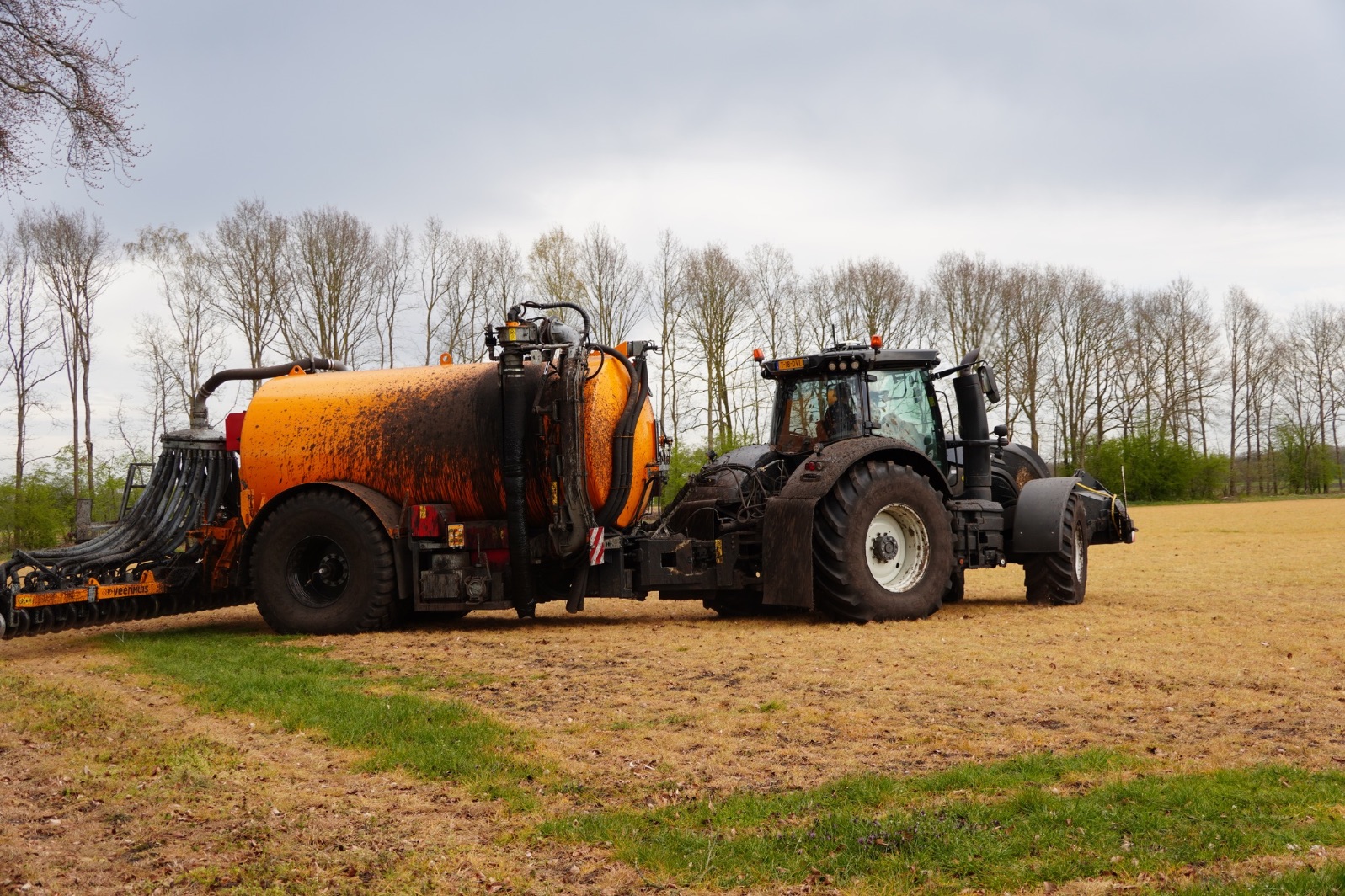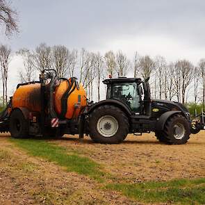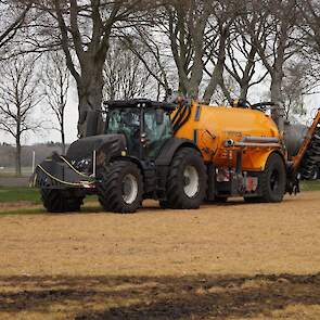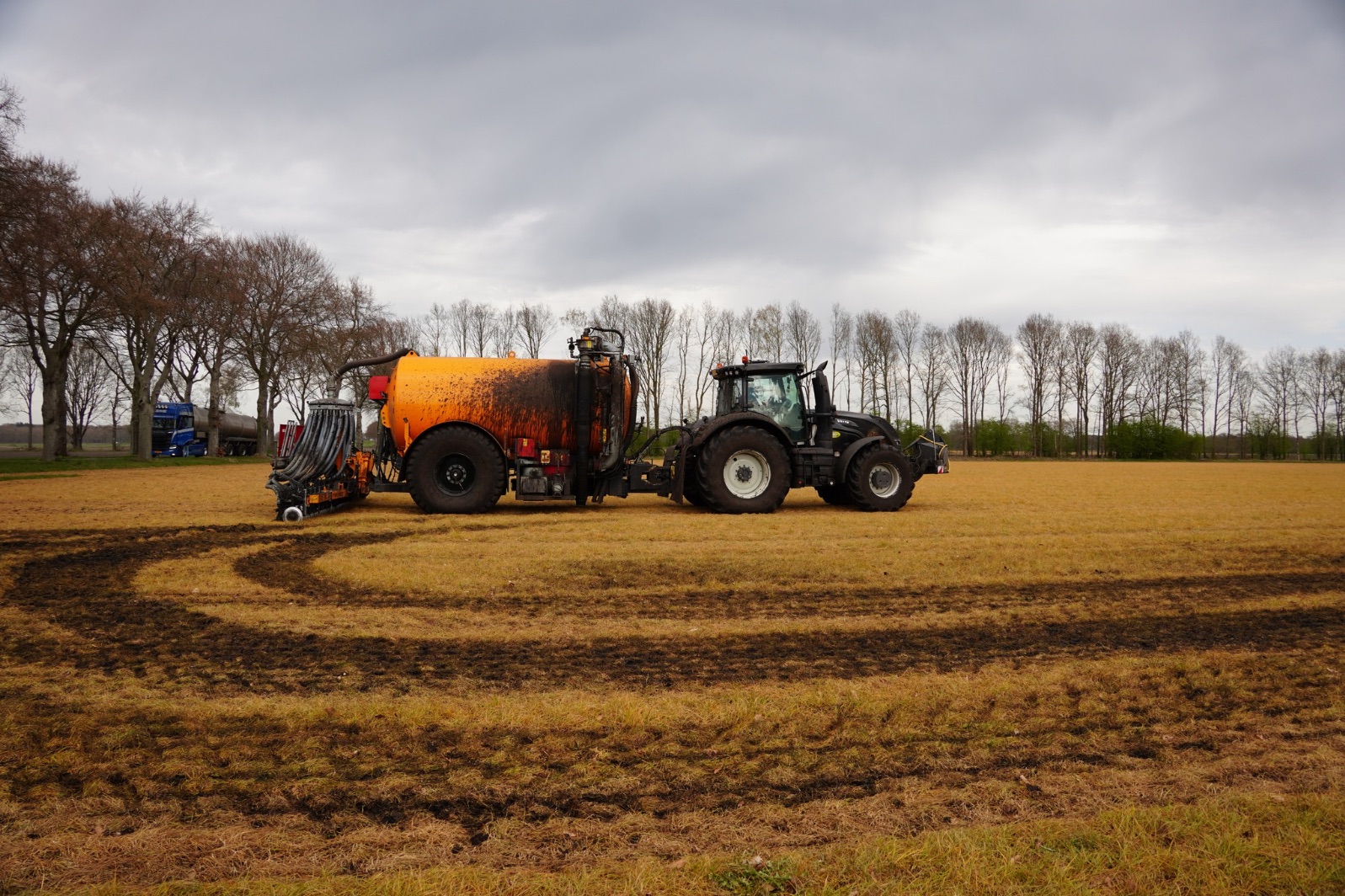 Bemesten met Valtra en daarachter een Veenhuis-tank