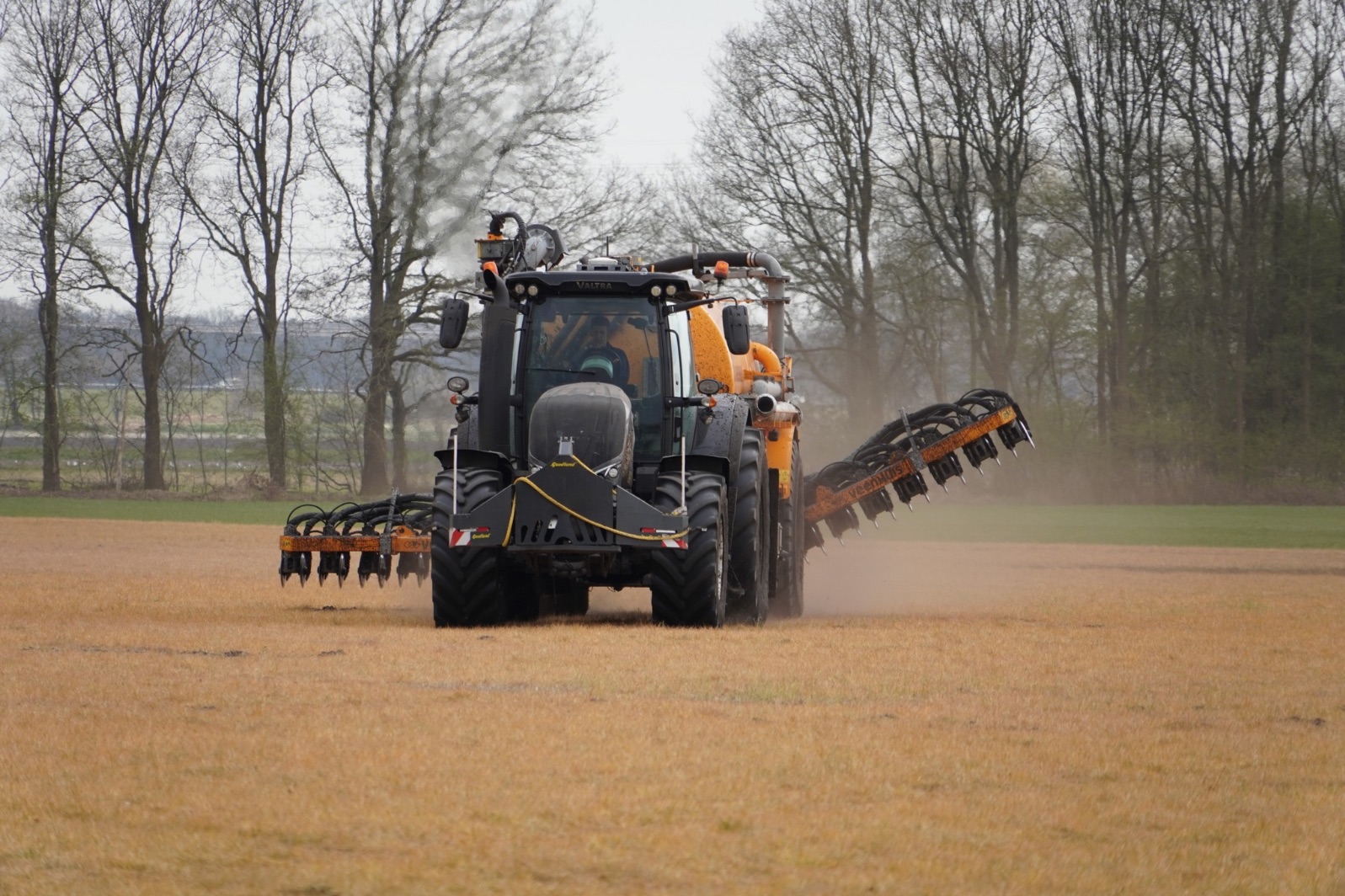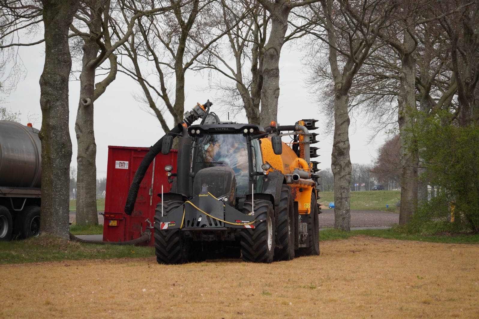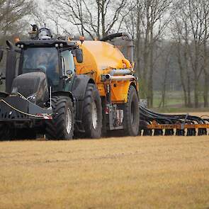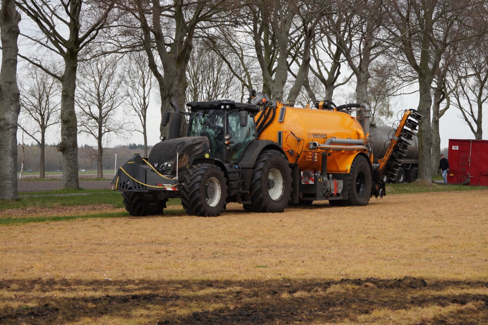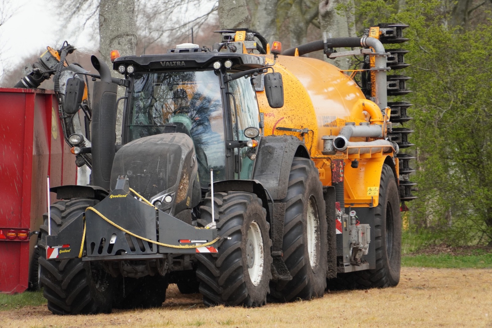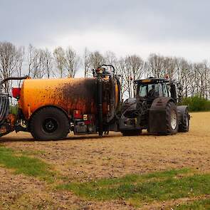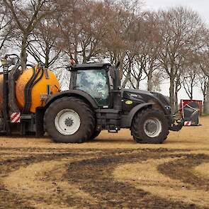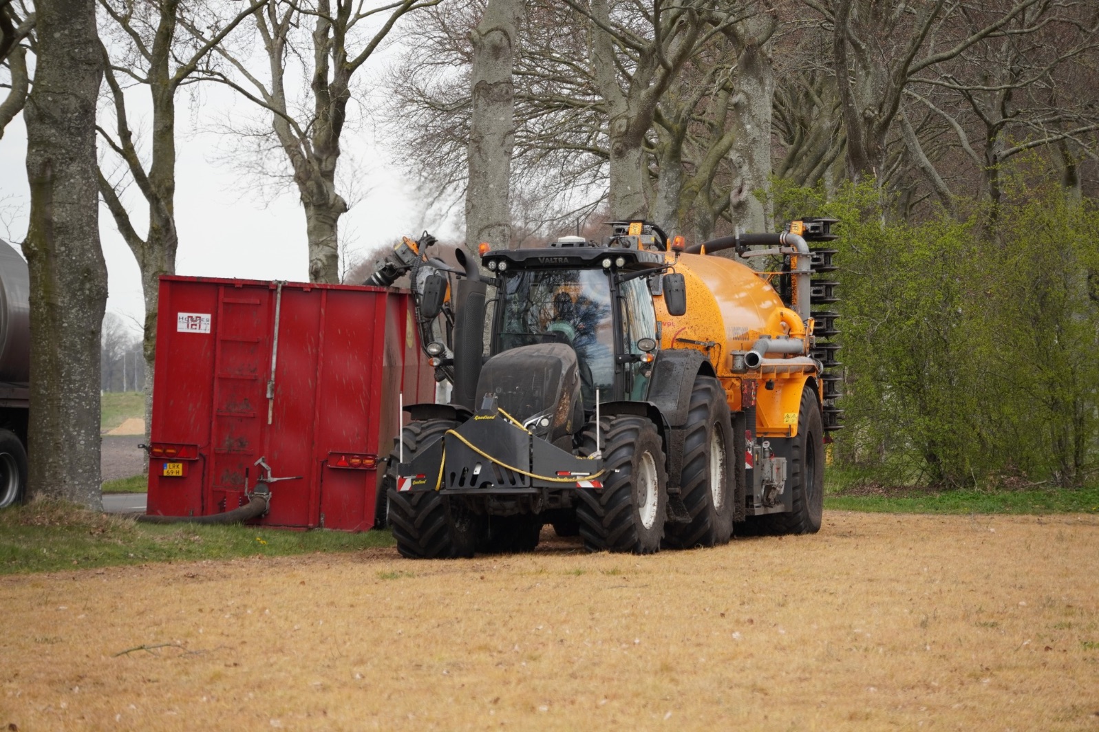 Bemesten met Valtra en daarachter een Veenhuis-tank