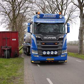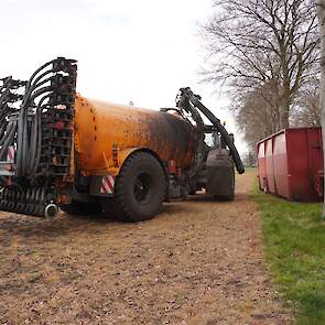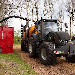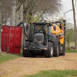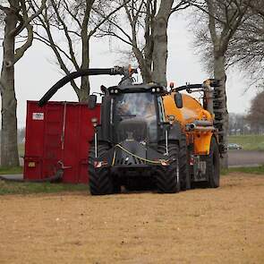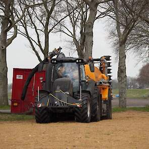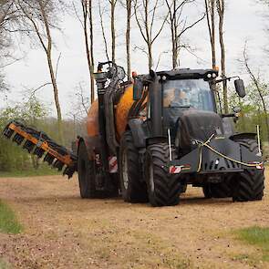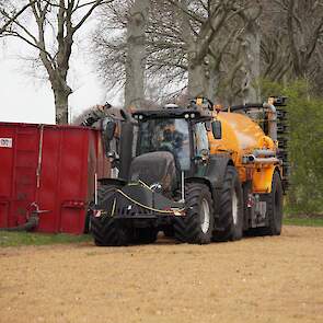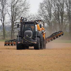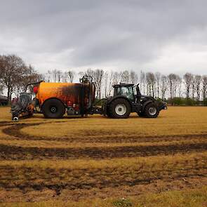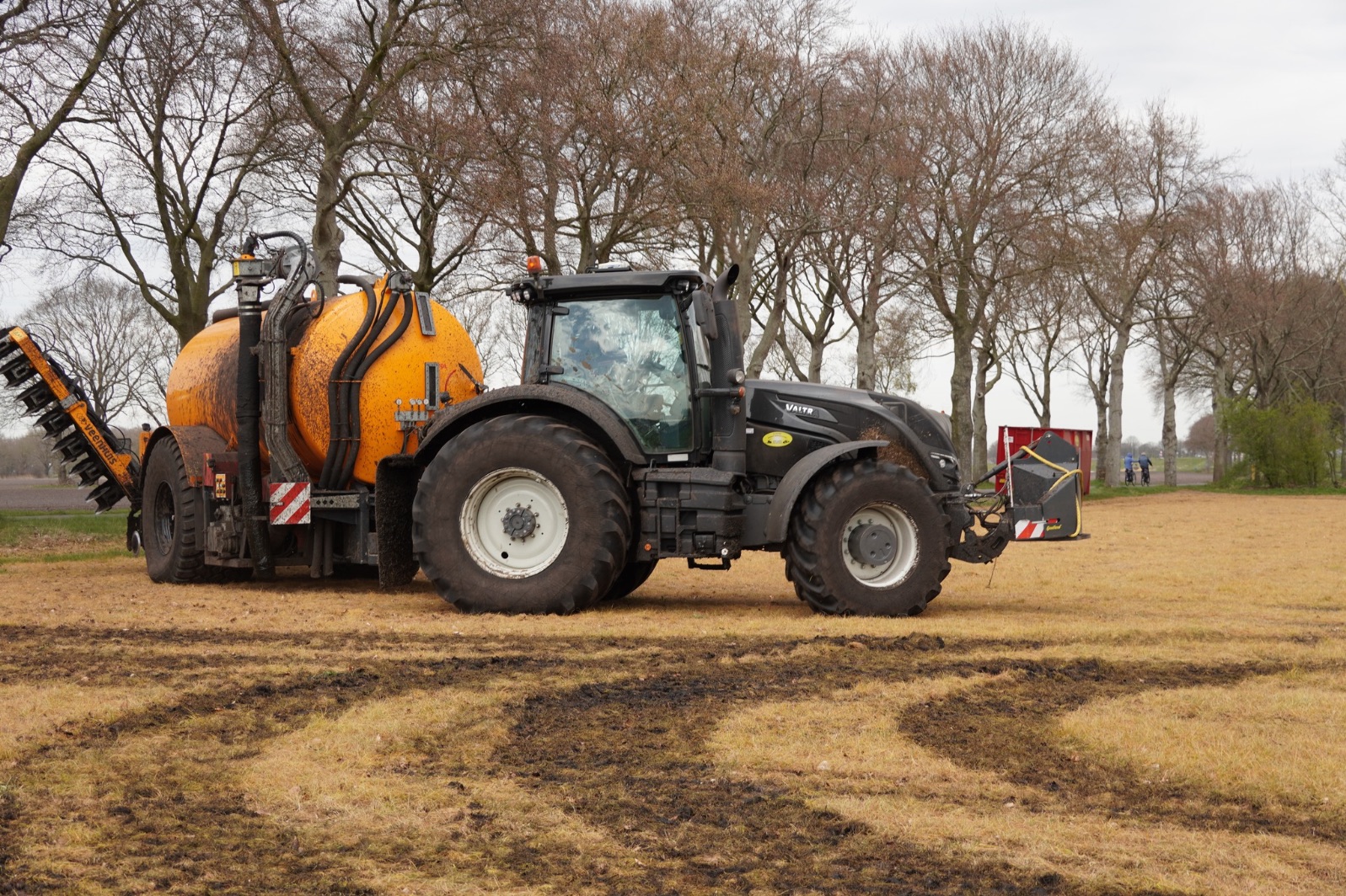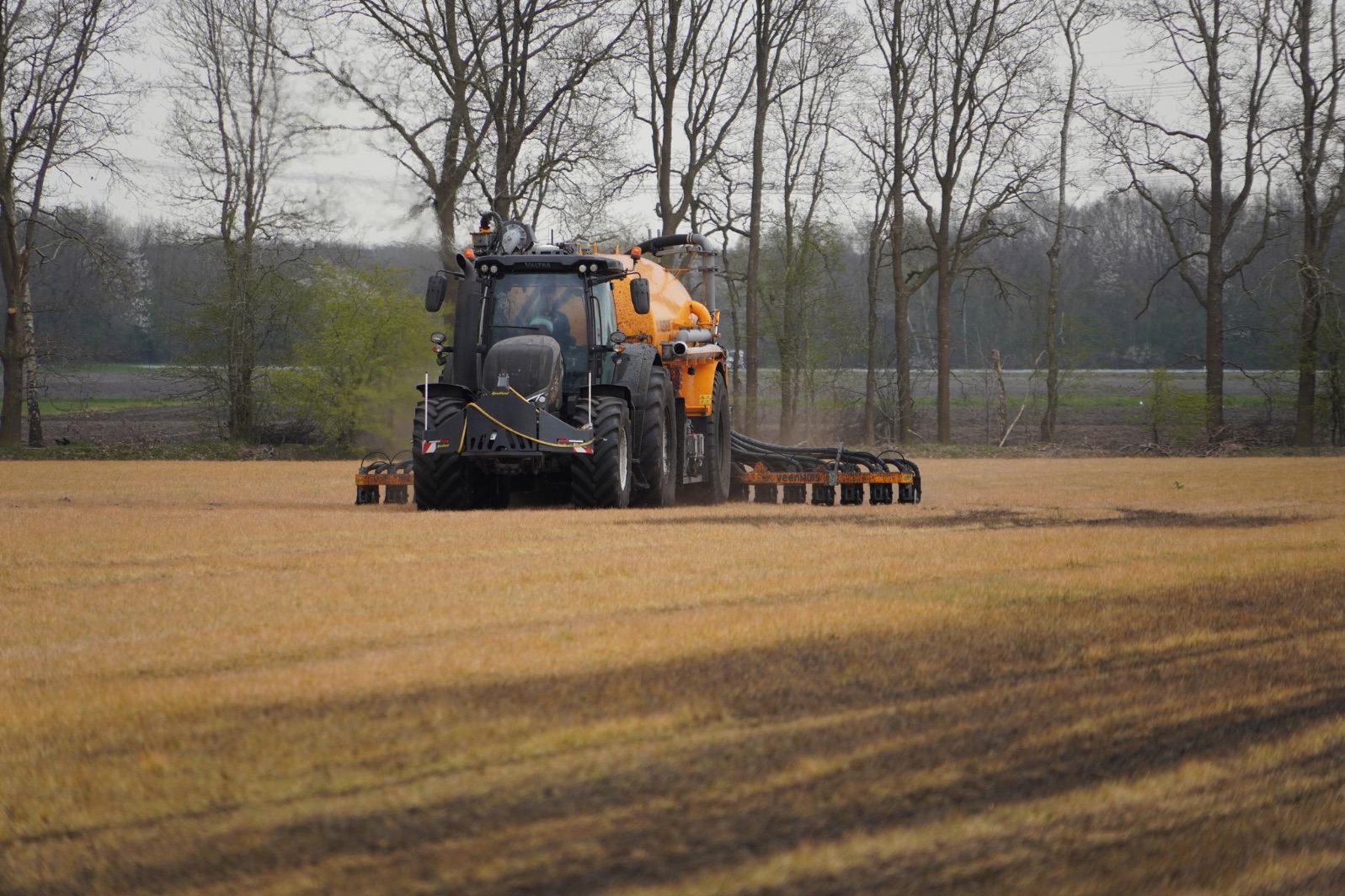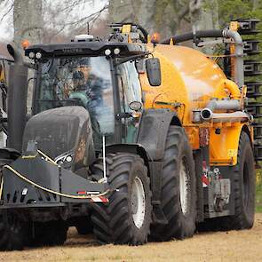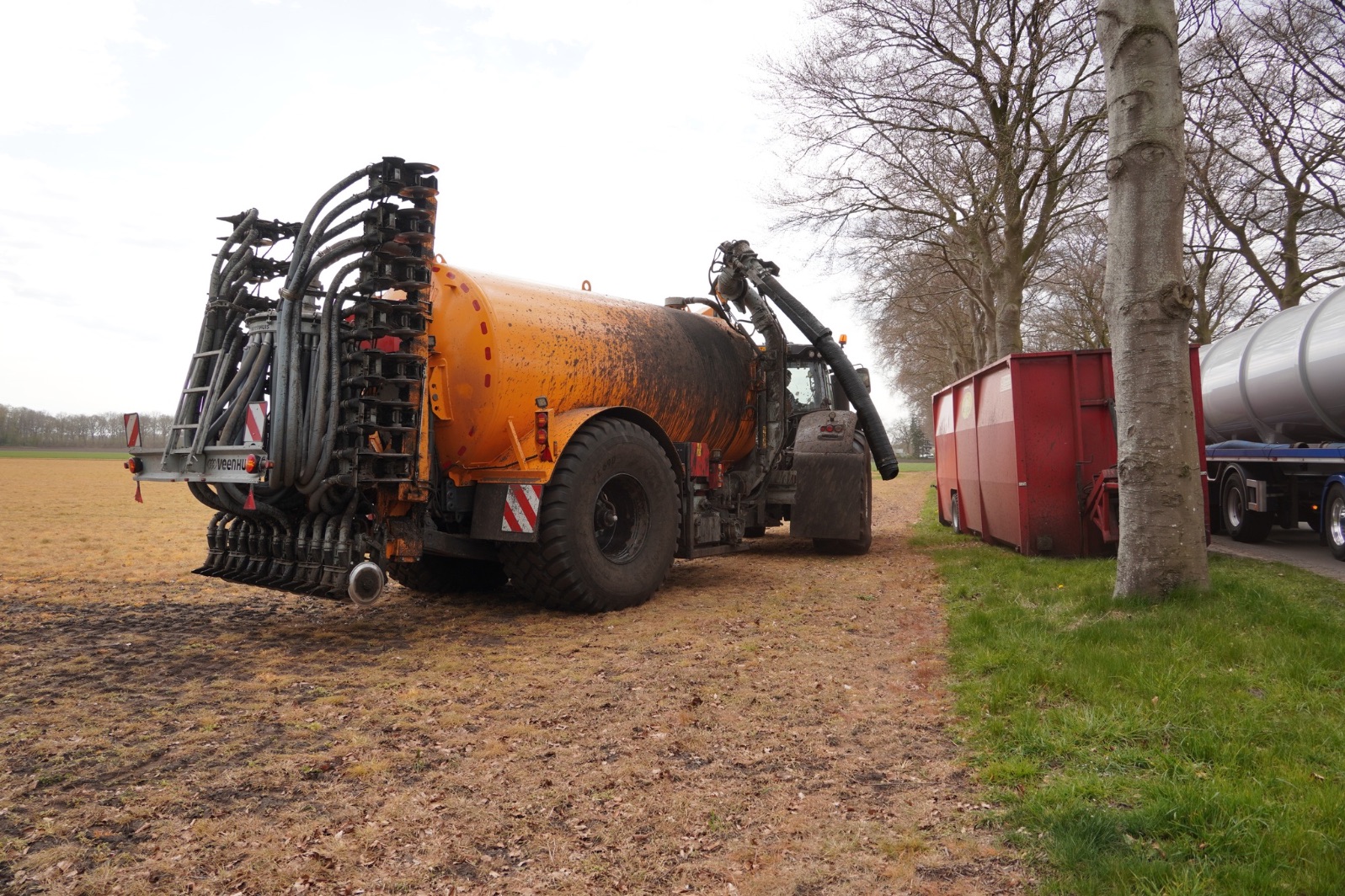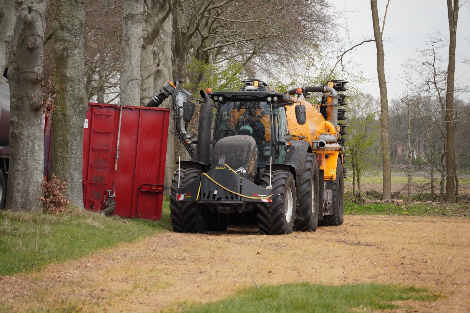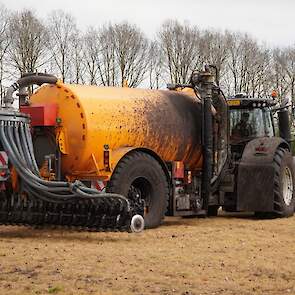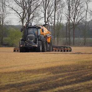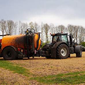 Bemesten met Valtra en daarachter een Veenhuis-tank