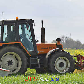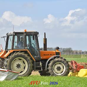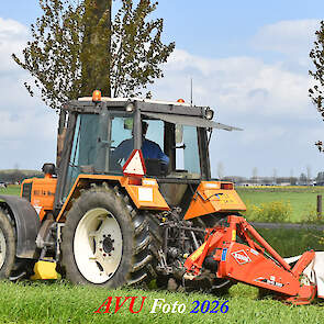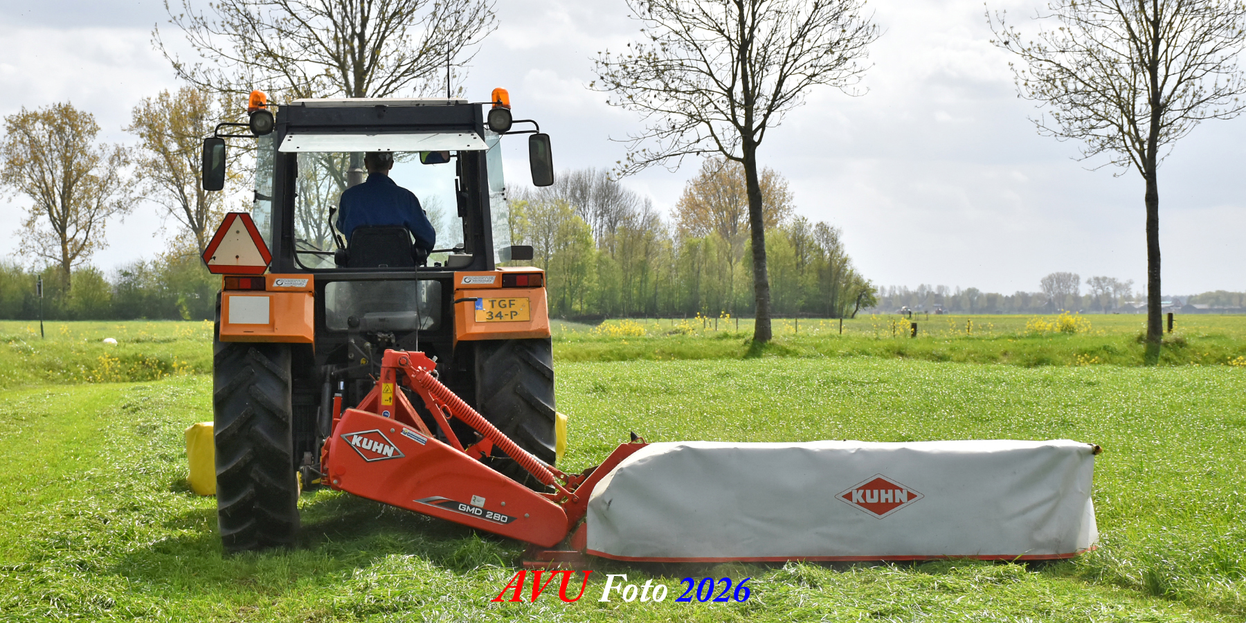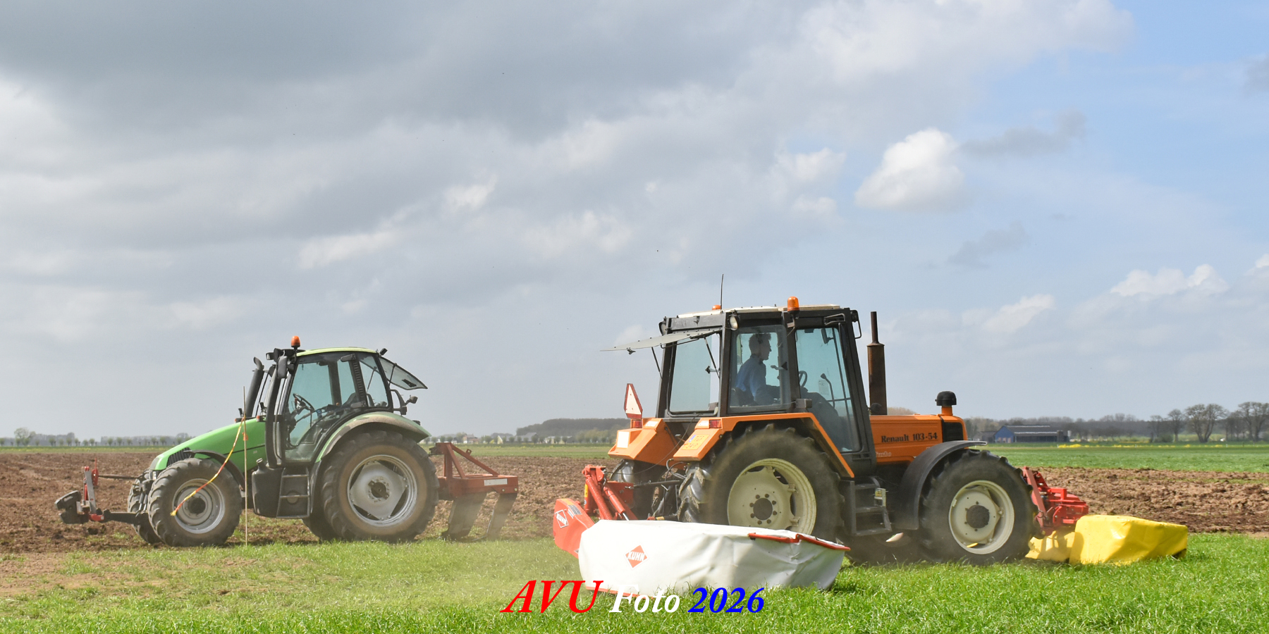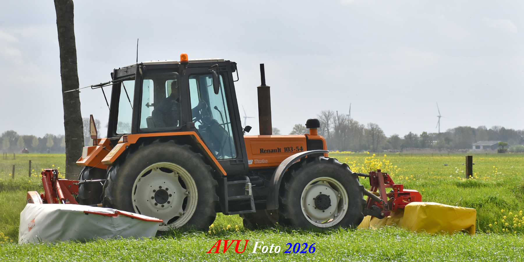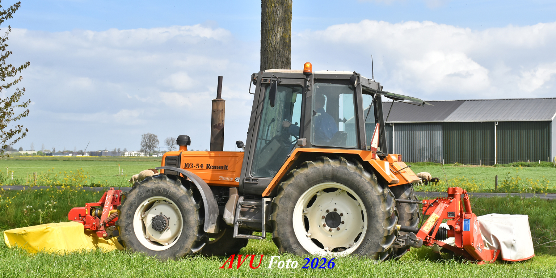 Het eerste gras maaien in Het Land van Heusden en Altena (NB) met een Reanult 103-54 met Mört-front- en Kuhn-achtermaaier.