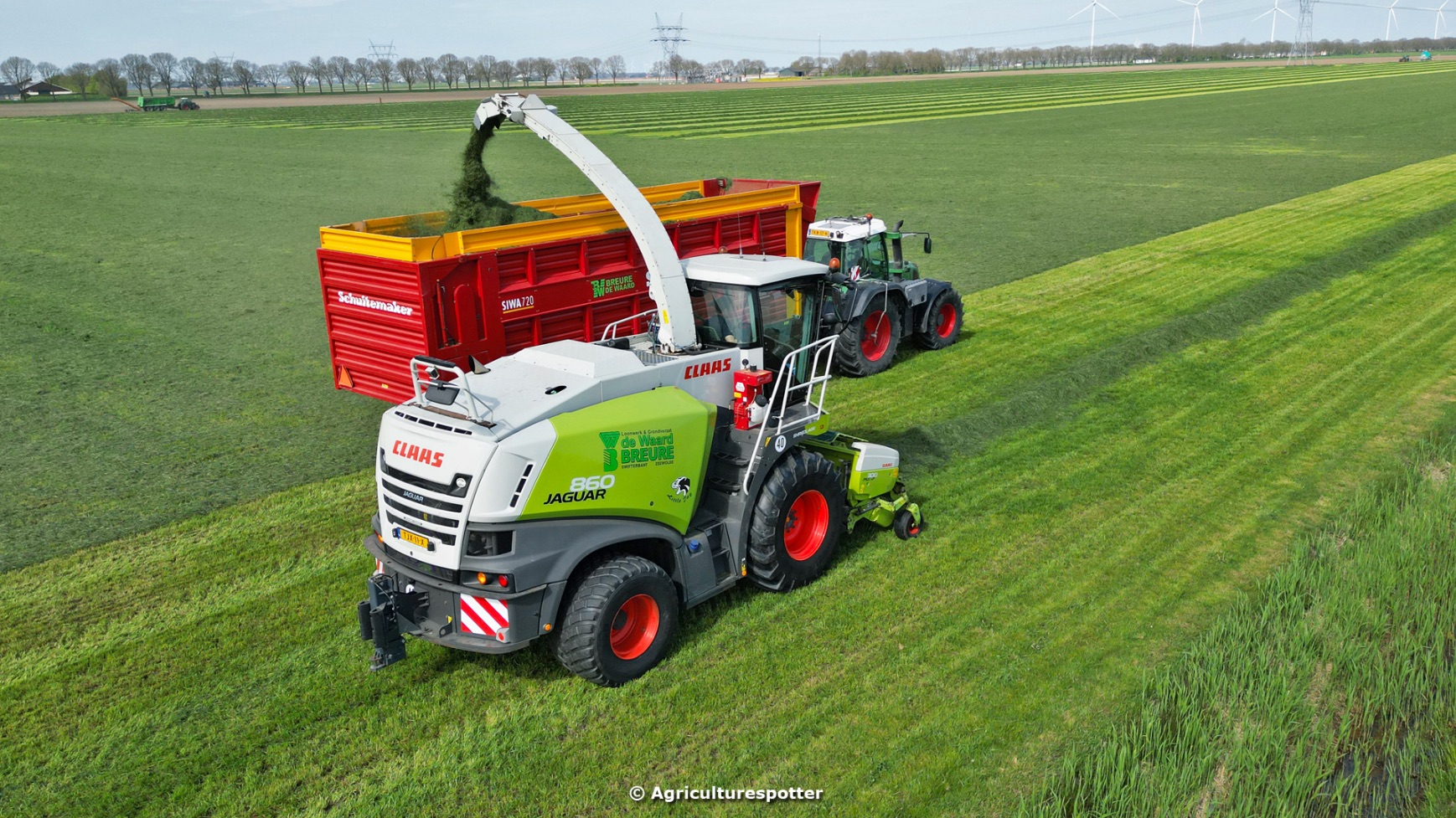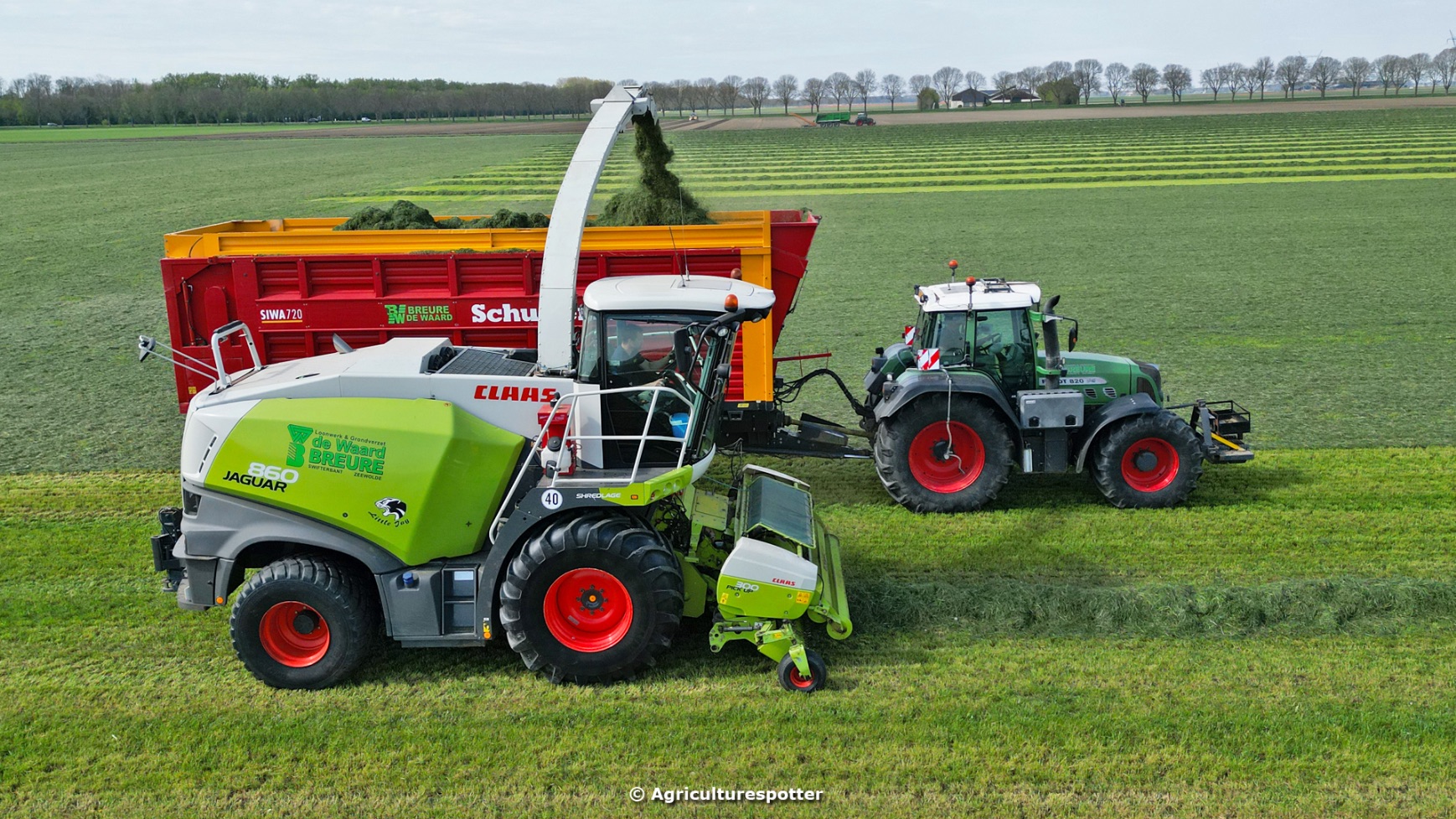Loon- en grondverzetbedrijf Breure de Waard heeft weer het eerste gras gehakseld en ingekuild dit jaar. Het hakselen werd gedaan met een Claas Jaguar 860 met een Claas Pick Up 300-voorzetstuk. Het transport werd gedaan met een Fendt 820 Vario en een Fendt 720 Vario met Schuitemaker Siwa 720-silagewagens. De kuil werd aangereden met een Ljungby Maskin L11.