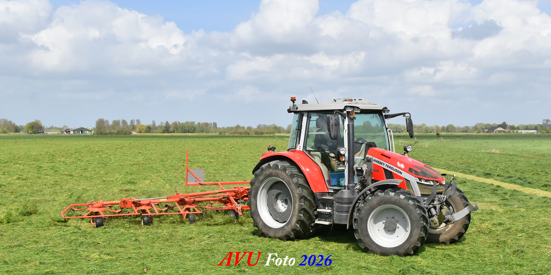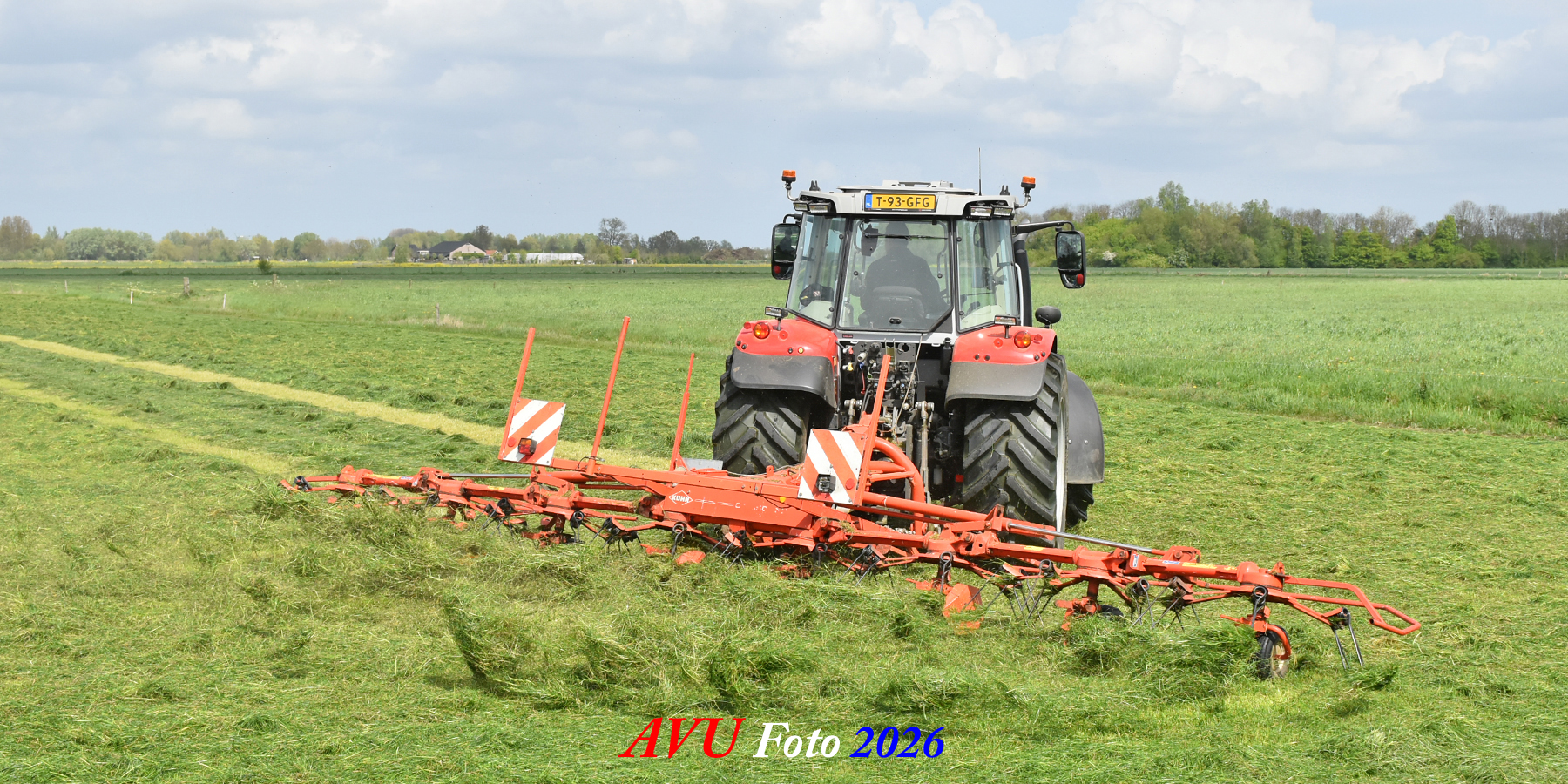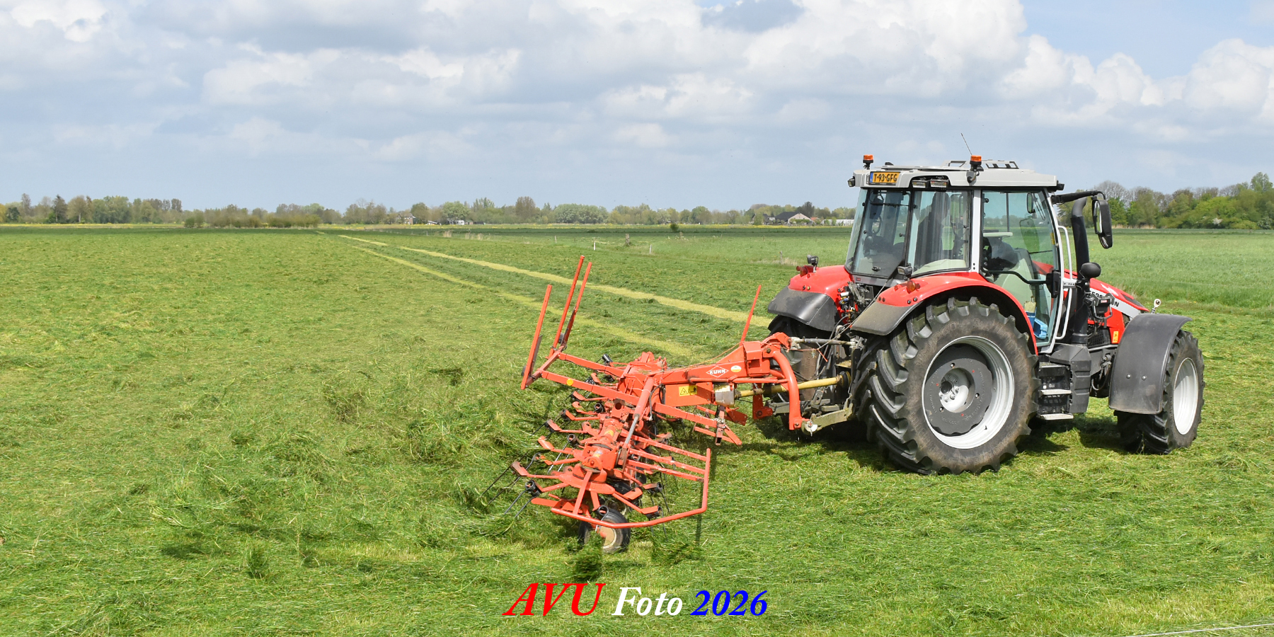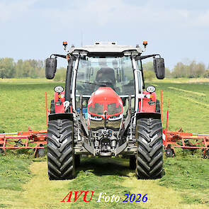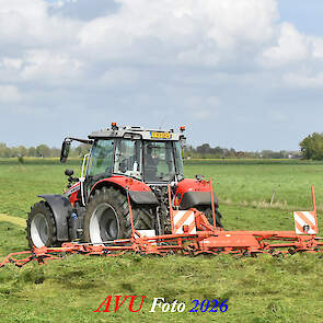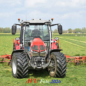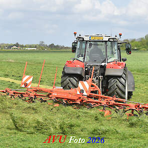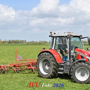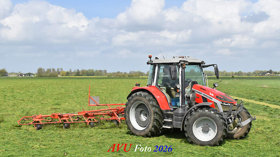 Het was in Het Land van Heusden en Altena, een mooie eerste snede voor de Massey Ferguson 5S145 met Kuhn-schudder.