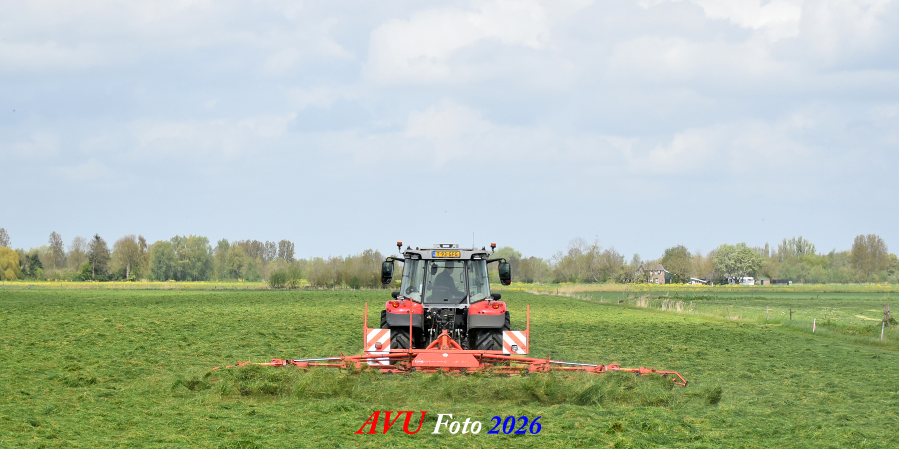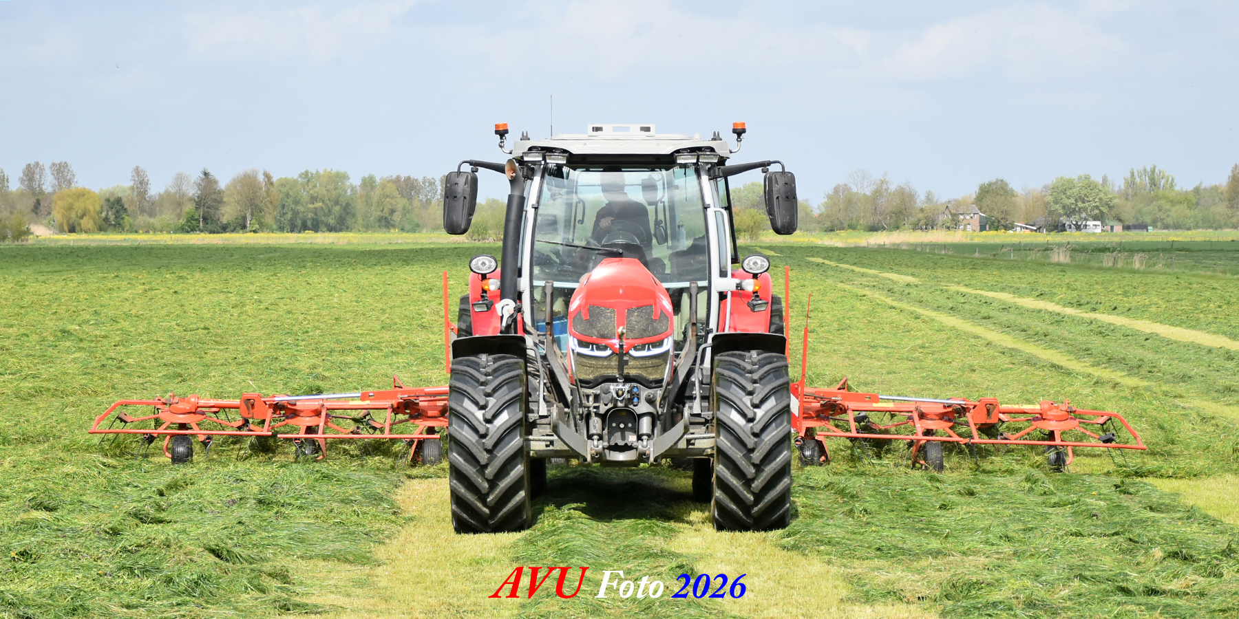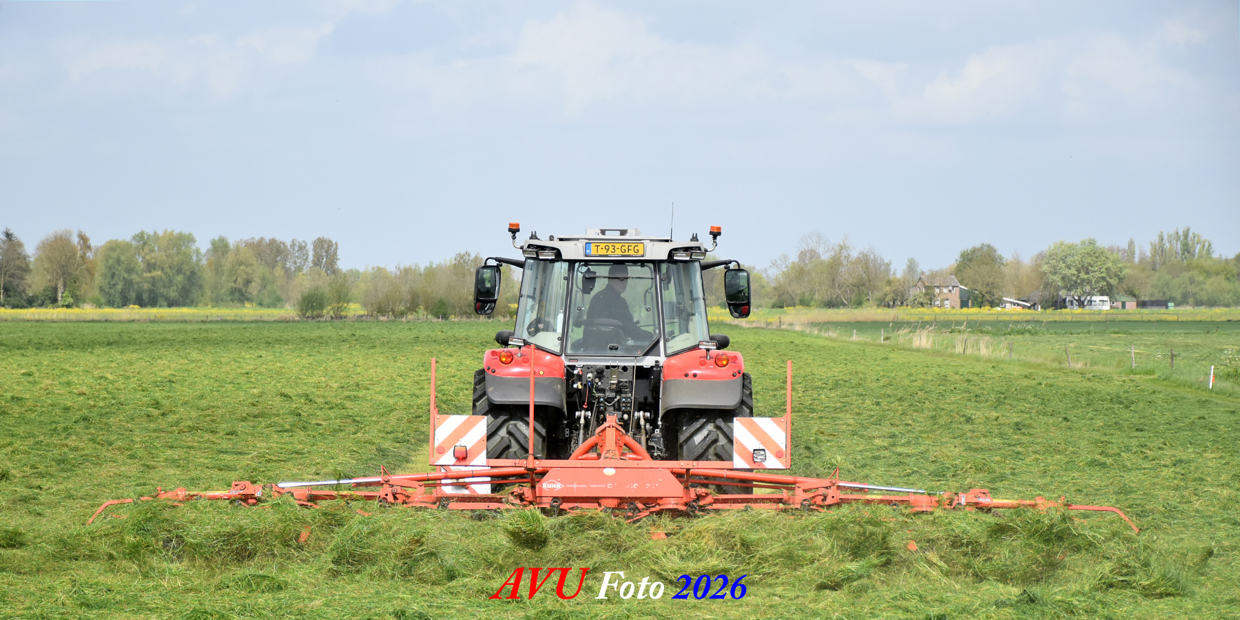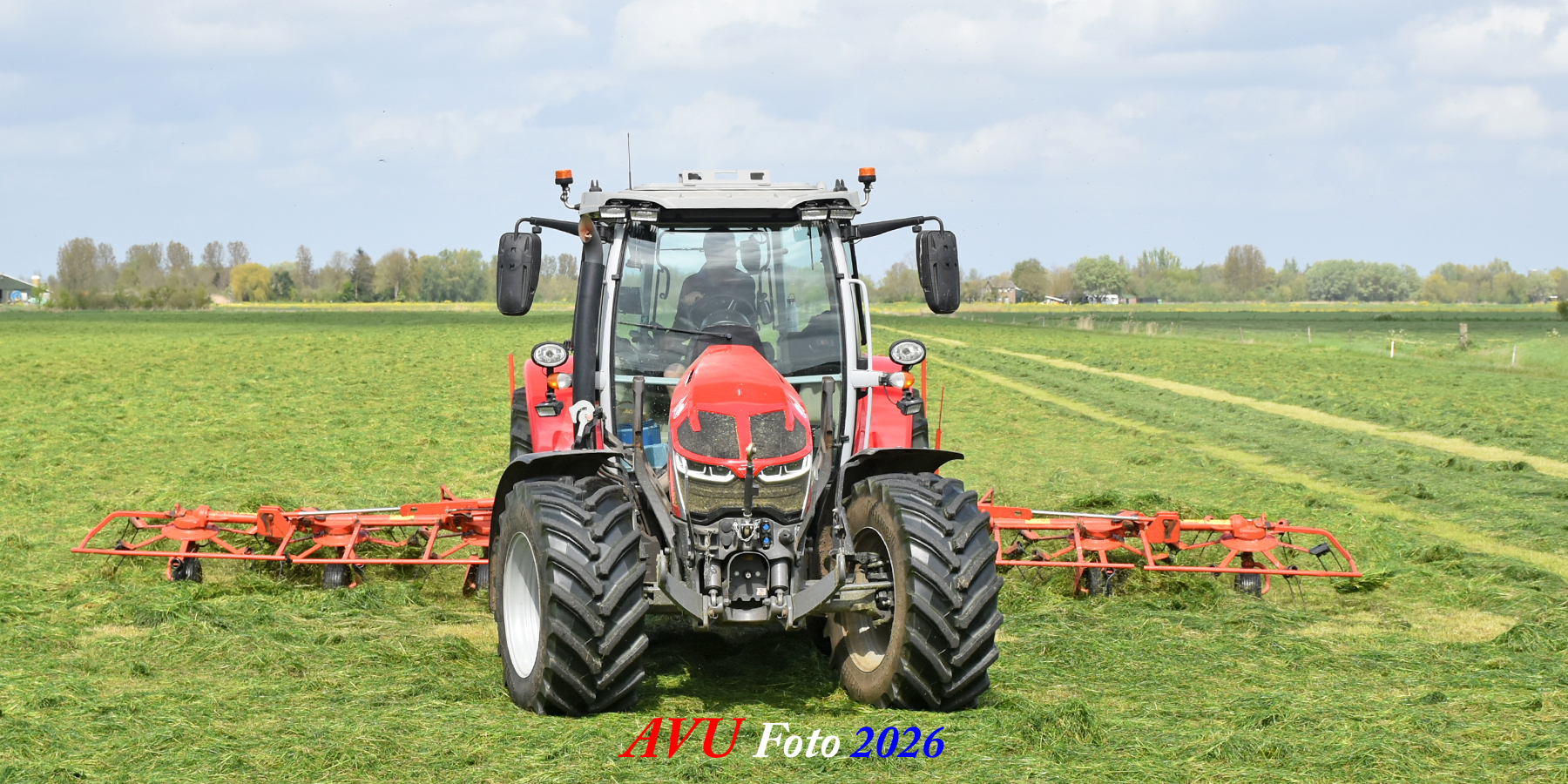 Het was in Het Land van Heusden en Altena, een mooie eerste snede voor de Massey Ferguson 5S145 met Kuhn-schudder.