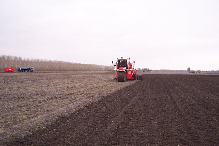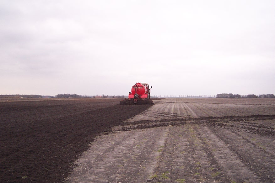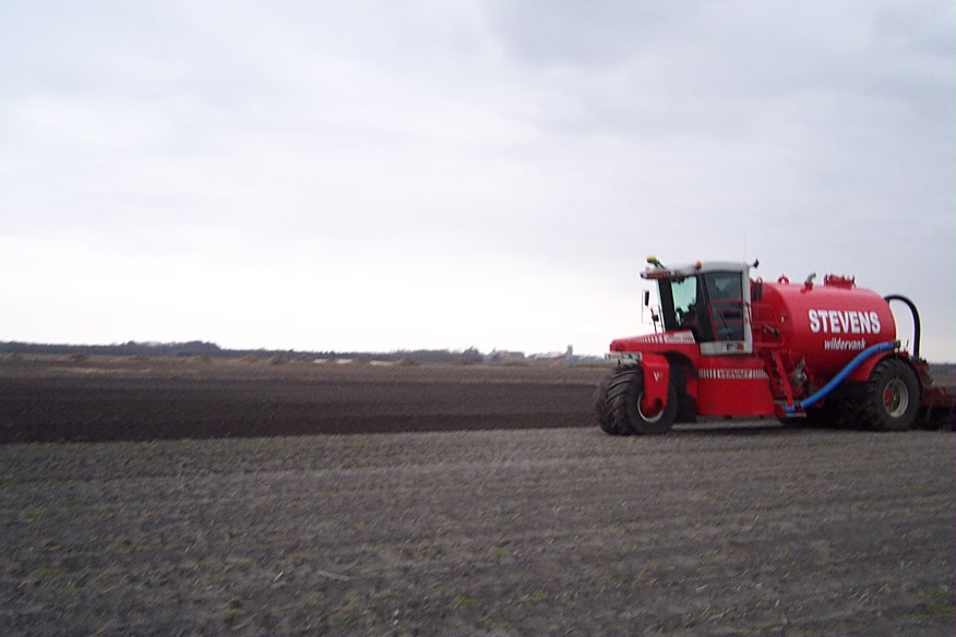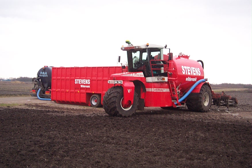 Loonbedrijf Stevens Wildervank druk in de mest met een Vervaet hydro trike met gps in Drouwenerveen.