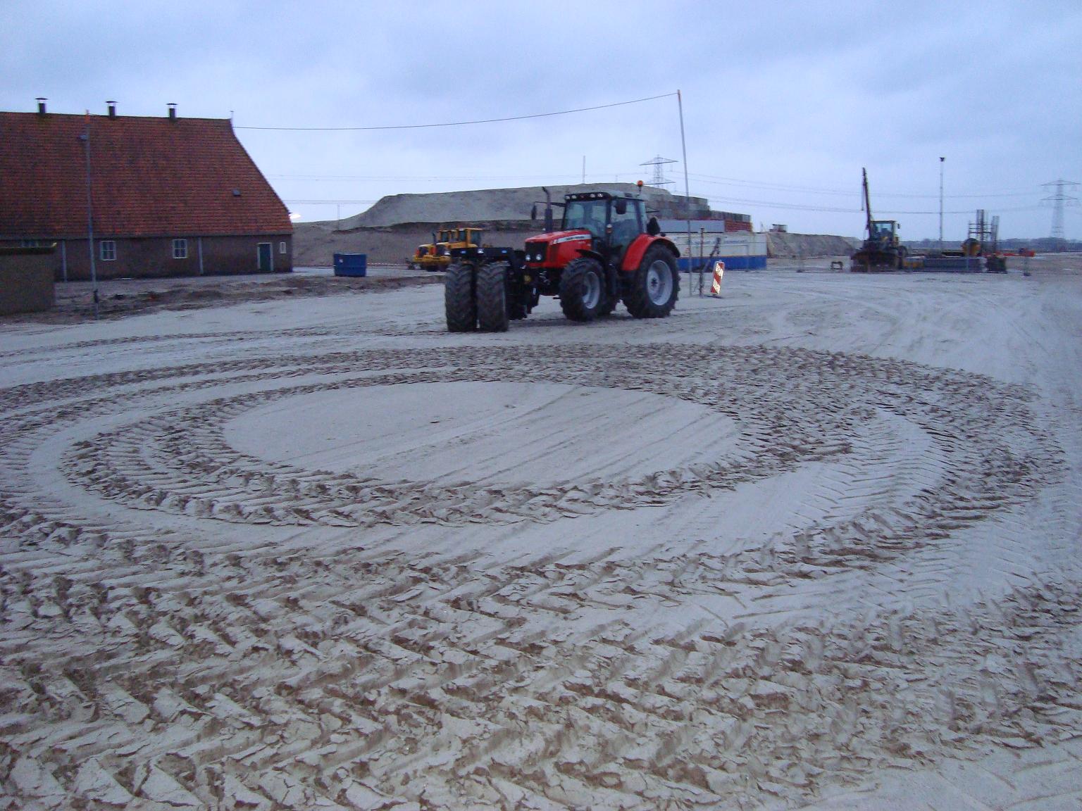 Deze machine maakt een korte draaicirkel d.m.v. een draaikrans.