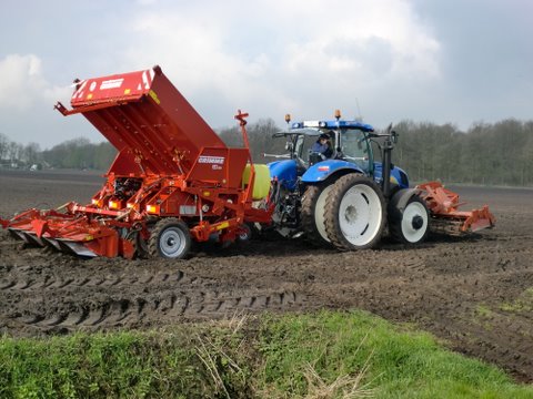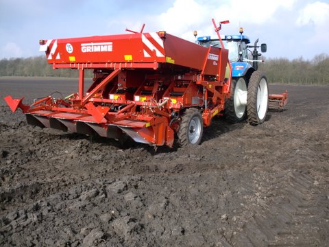 Grimme GB430 met rugvormkap en New Holland T6080.