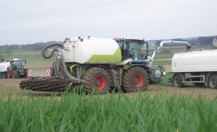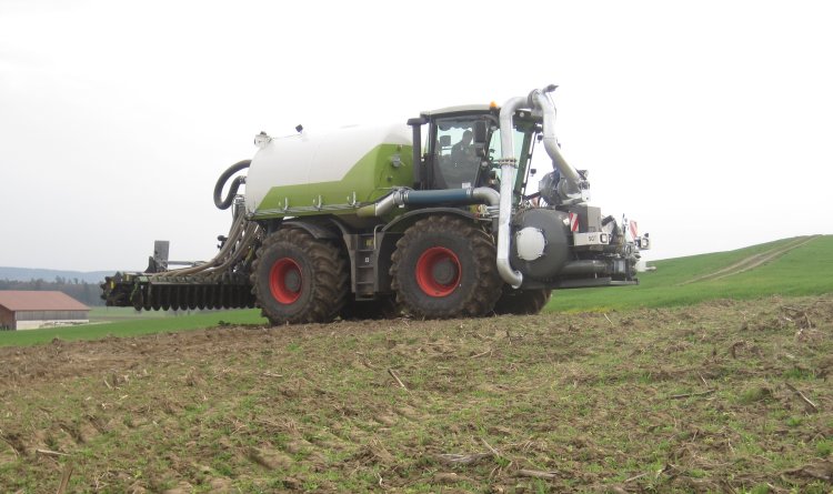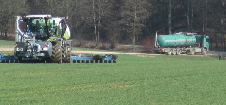 Vorige week zijn er in het Zuiden van Duitsland weer enige Xerion's met SGT tanks uitgeleverd. Het waren Xerion VC's met draaibare kabines. Een daarvan heeft een nieuwe 6mtr Kaweco eenrijige schijven met grote naloopwalz. Op heuvels tussen 7 en 15 % maakte dit een mooie indruk.