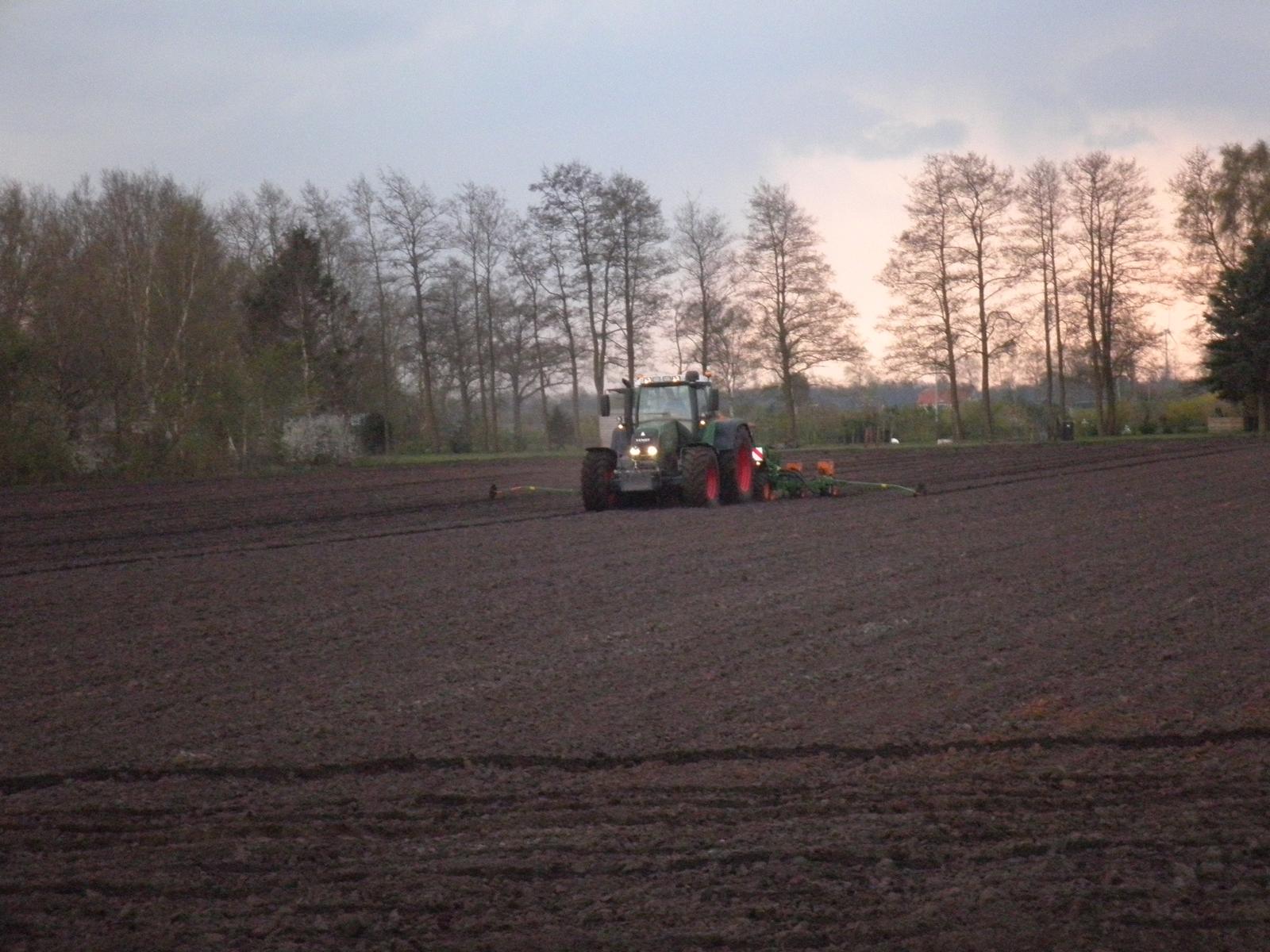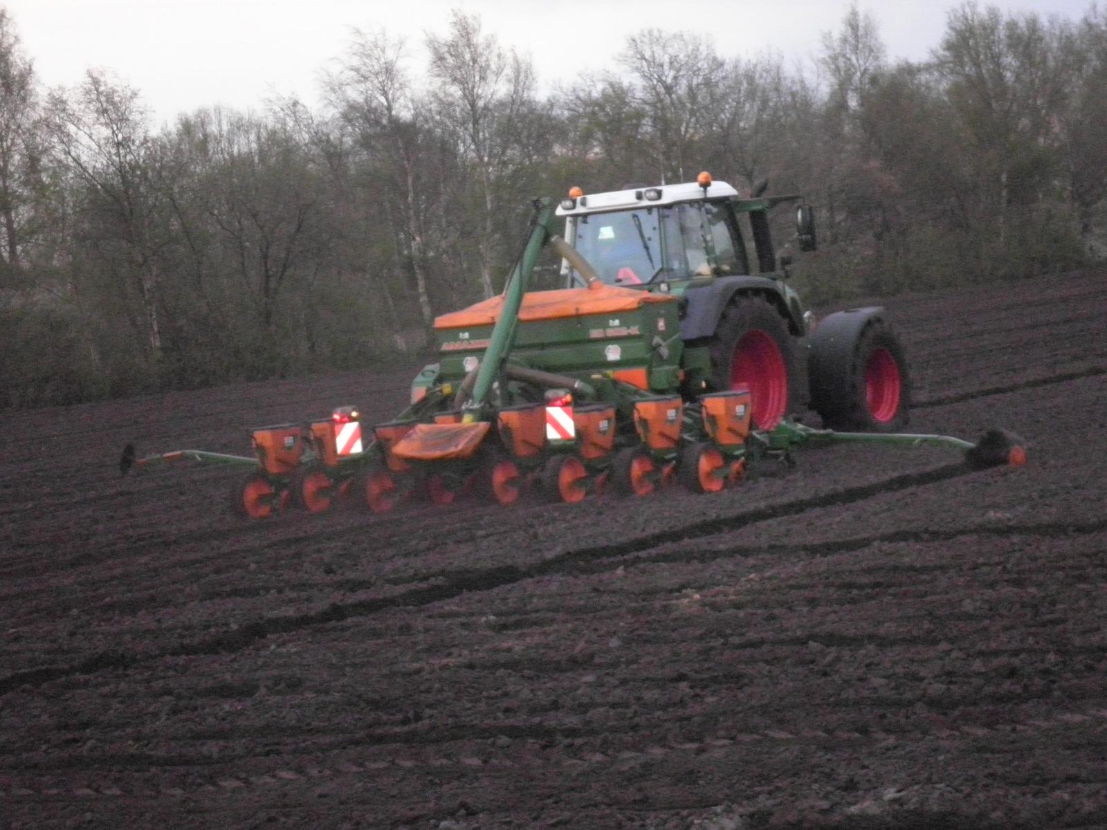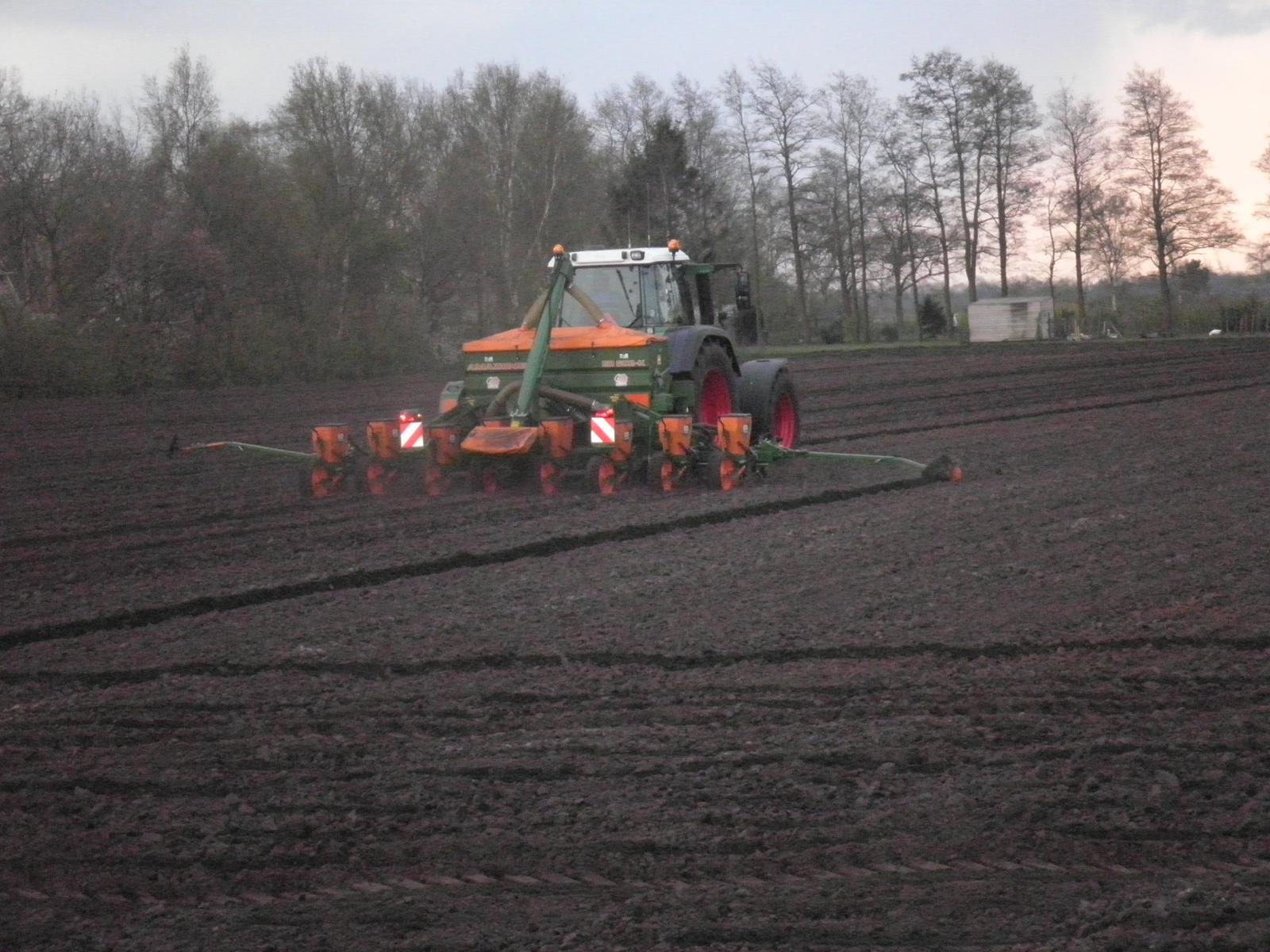Loonbedrijf Huls uit Jipsingboertange gestart met maiszaaien met een nieuwe Fendt 818 en 8-rijige amazone zaaimachine.