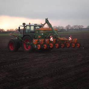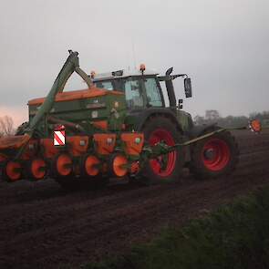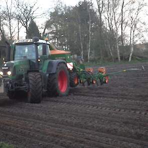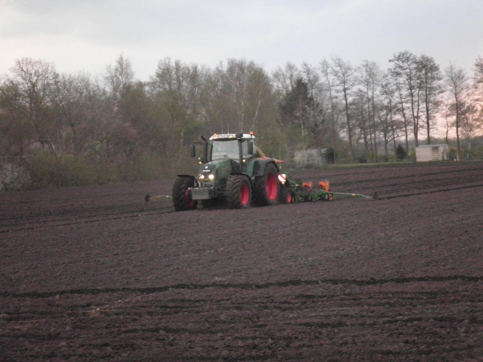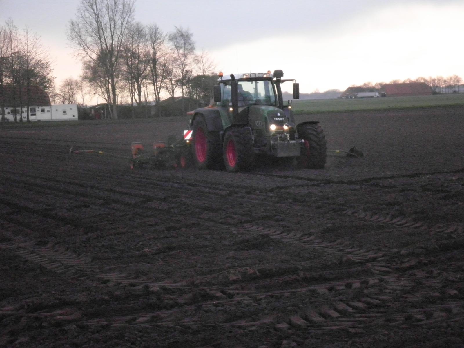 Loonbedrijf Huls uit Jipsingboertange gestart met maiszaaien met een nieuwe Fendt 818 en 8-rijige amazone zaaimachine.