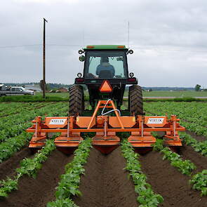 De machine is alleen als rijenfrees te gebruiken, kan bijna onder elke omstandigheden prima werken, gewassen met hoger loof is dan ook geen probleem.