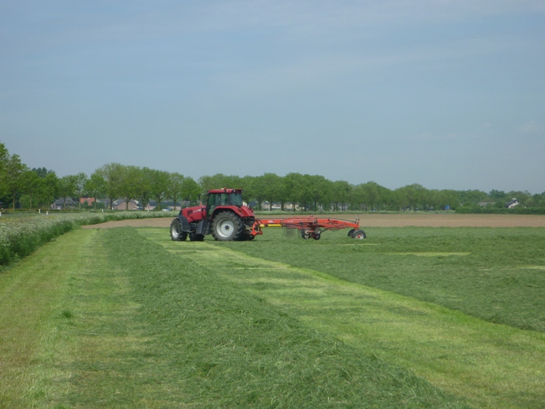 Jan Cuppen gewasverzorging aan het gras harken met een Case CVX 1135 en Kuhn GA 8121 hark.
