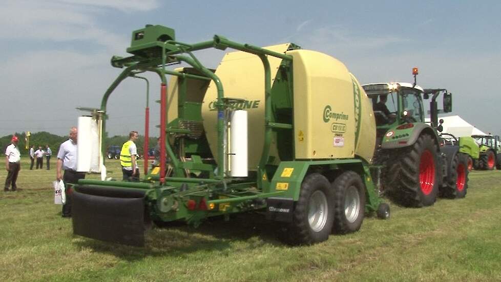 Demonstratie met verschillende ronde balenpersen tijdens de Graslanddemo 2012 in Eksaarde (B.)