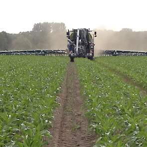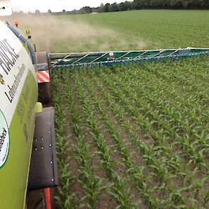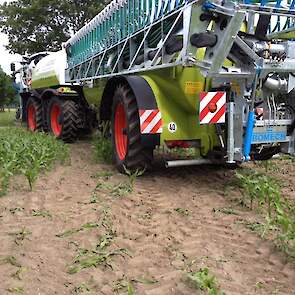 Meerdere Xerion gebruikers rijden op dit moment in staande mais om de mest op het juiste moment ter beschikking te stellen aan de mais. Een absolute capaciteits kanon is deze Xerion S TRACK met 24 mtr Bomech en 34 cbm inhoud met smalle banden en GPS sturing om exact door de rijen sturen te kunnen. De as van de tank is gestuurd voor minimale schade aan het mais bestand.