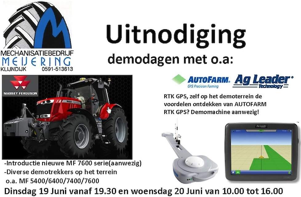 Op Woensdag 20 Juni organiseert Mechnisatiebedrijf Meijering een demodag met de volgende machines: