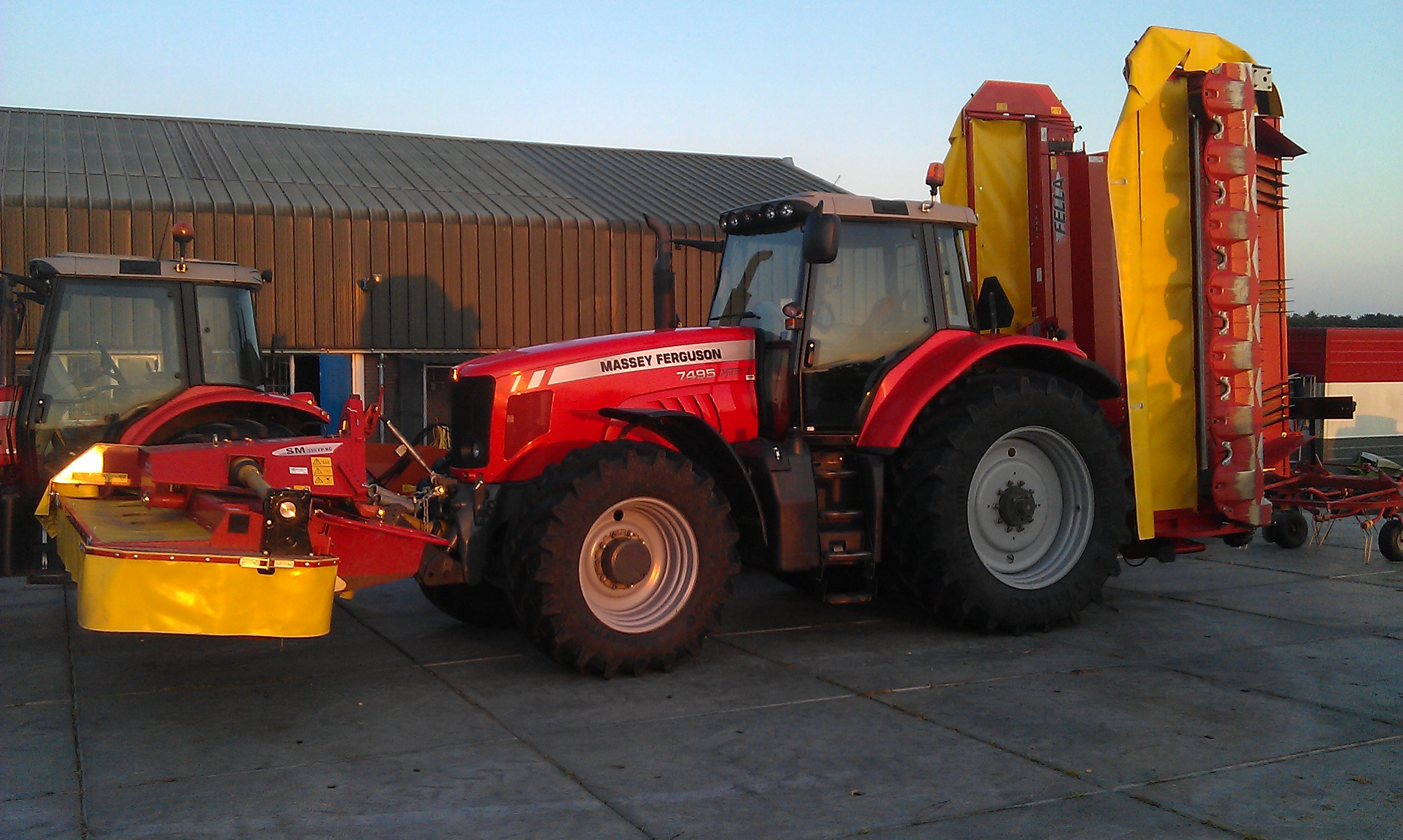 - Triple schijvenmaaier combinatie met kneuzer aangedreven door een Massey Ferguson 7495