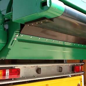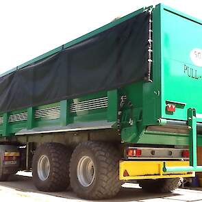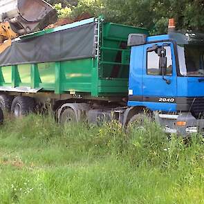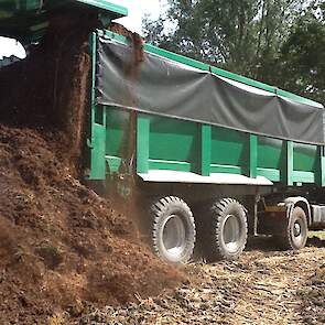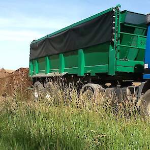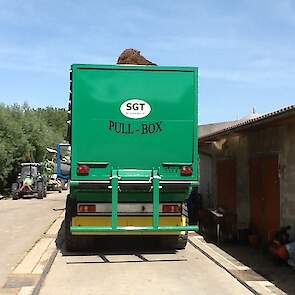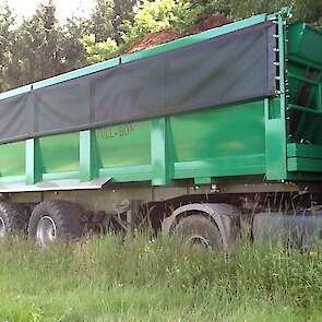 Geladen werd er met een schovel met hoogkiepbak paardenmest. Volgeladen zat er in de 56cbm bak ca 28-29 ton produkt wat in 70 sec afgeladen werd.