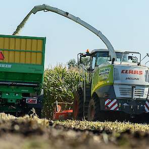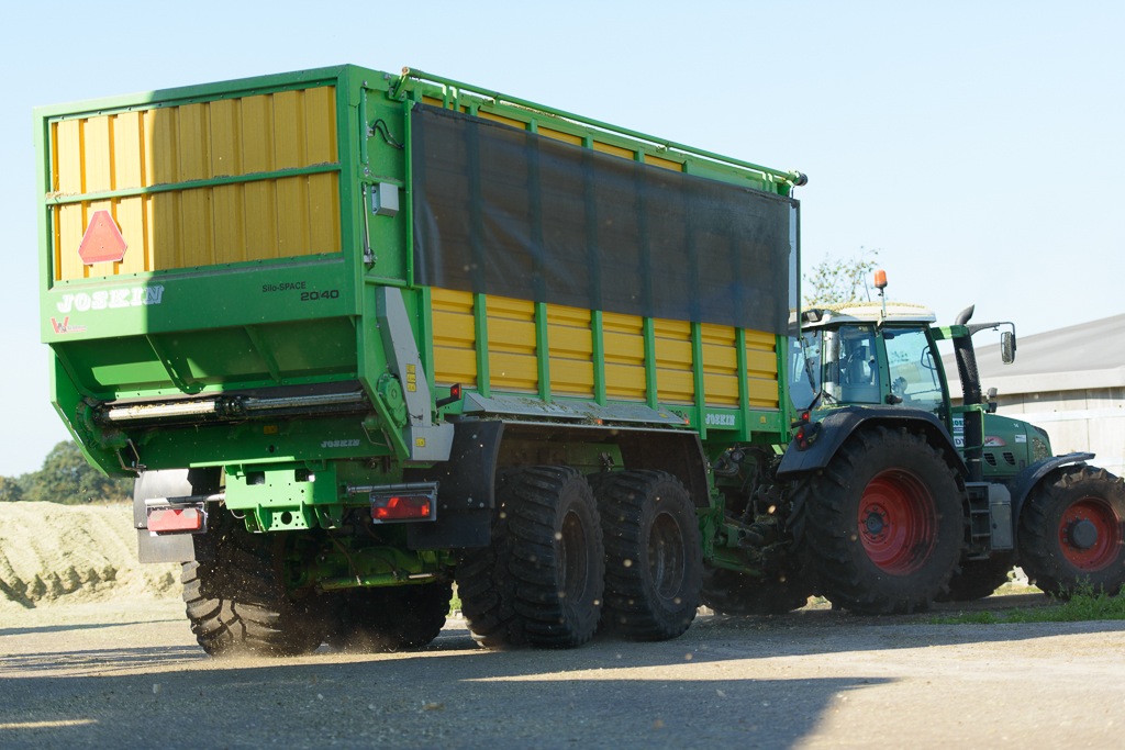 Loonbedrijf Roelofs uit Lemelerveld in de mais met twee nieuwe aangedreven Joskin 20/40 wagens.