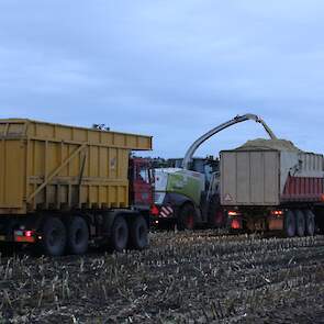 Loonbedrijf Mark van Roij uit Grashoek bezig te Panningen met Claas Jaguar 940, Steyr, Claas en Ginaf.
