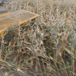 Marangon maaier "made for New Holland" draait alles in de hakselaar . Enkel wat kolvenverlies maar dit heb je met een gewone bek in deze omstandigheden ook. Het voornaamste is dat deze maaier niet stropt waardoor stilstand vermeden wordt . De maaier in het filmpje is eigendom van New Holland, loonwerkers met New Holland hakselaar die ook met deze omstandigheden geconfronteerd worden kunnen Huis Vallaey contacteren.