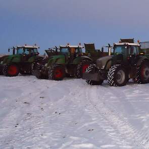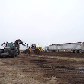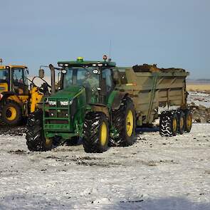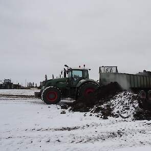 Om het compost zo goed mogenlijk te verdelen zijn de trekkers zijn uitgerust met GPS en maken wij gebruik van de acrecounter.Als er een lange afstand moet worden overbrugt tussen de composthoop en het veld word het compost verplaatst naar het veld door trucks.De andere trekkers op de foto zijn van een klant.