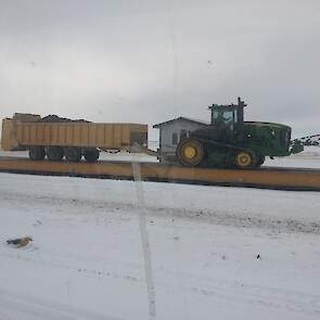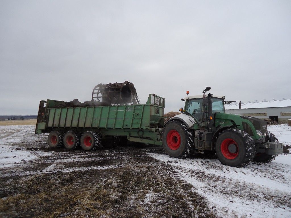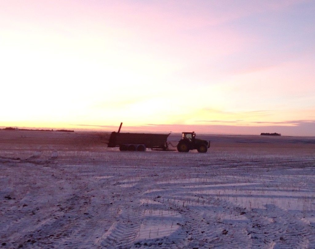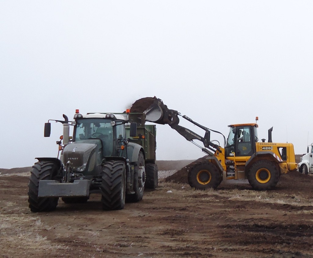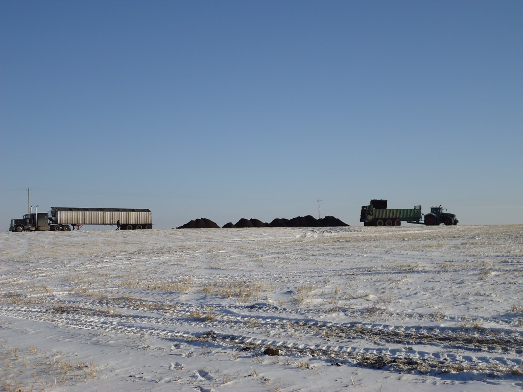 Compost rijden over de graanvelden van Alberta Canada.Dit word gedaan door Holtrop enterprises met meer dan 10 jaar ervaring op dit gebied.We werken het volgende Materieel: