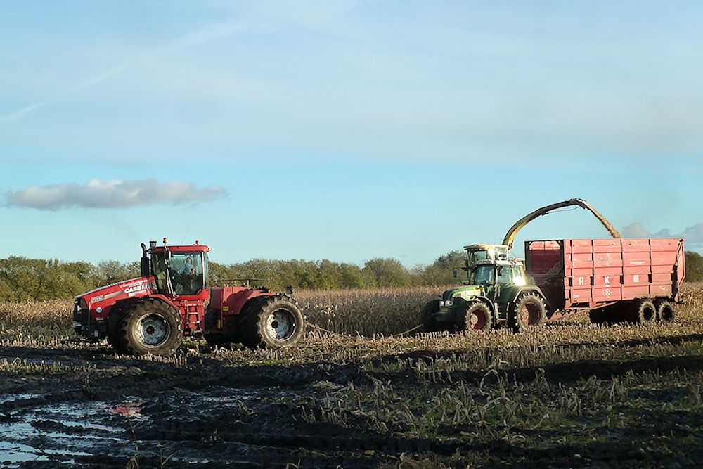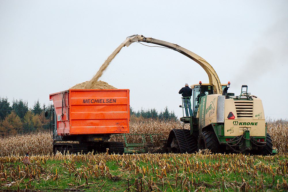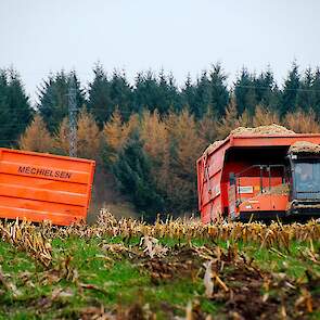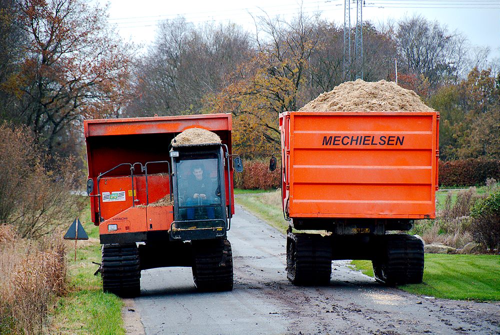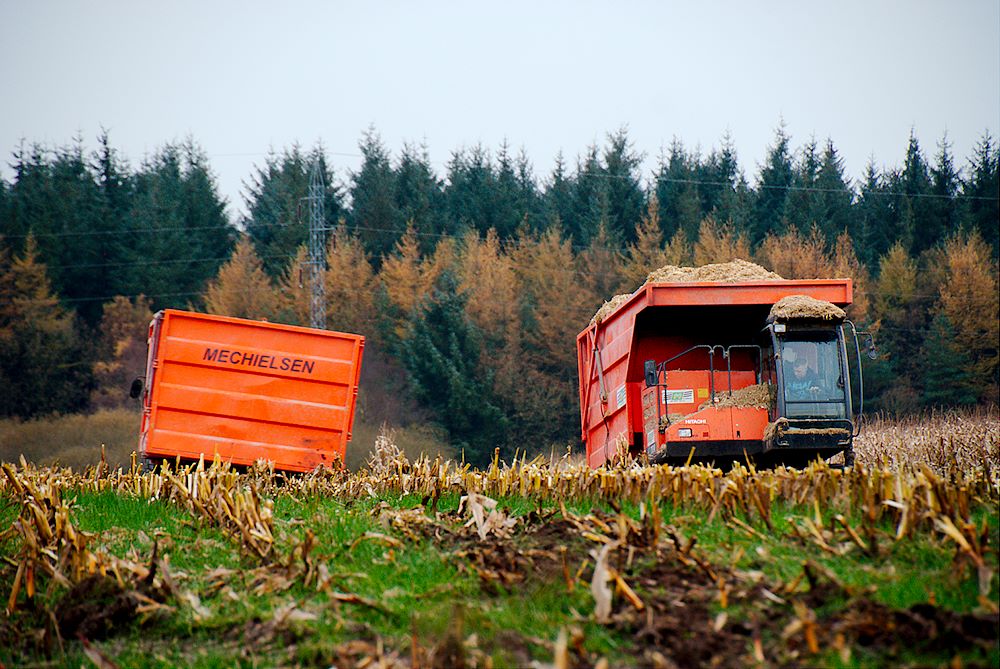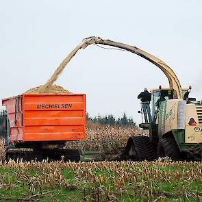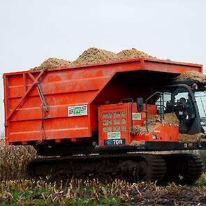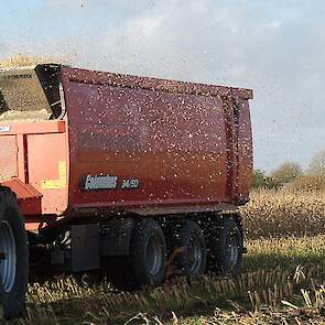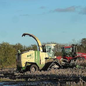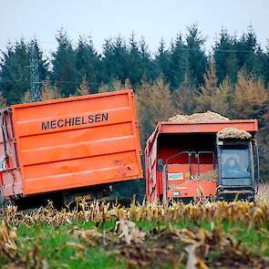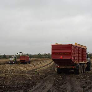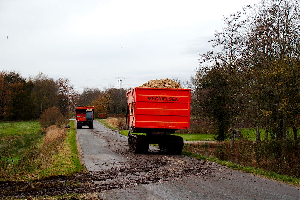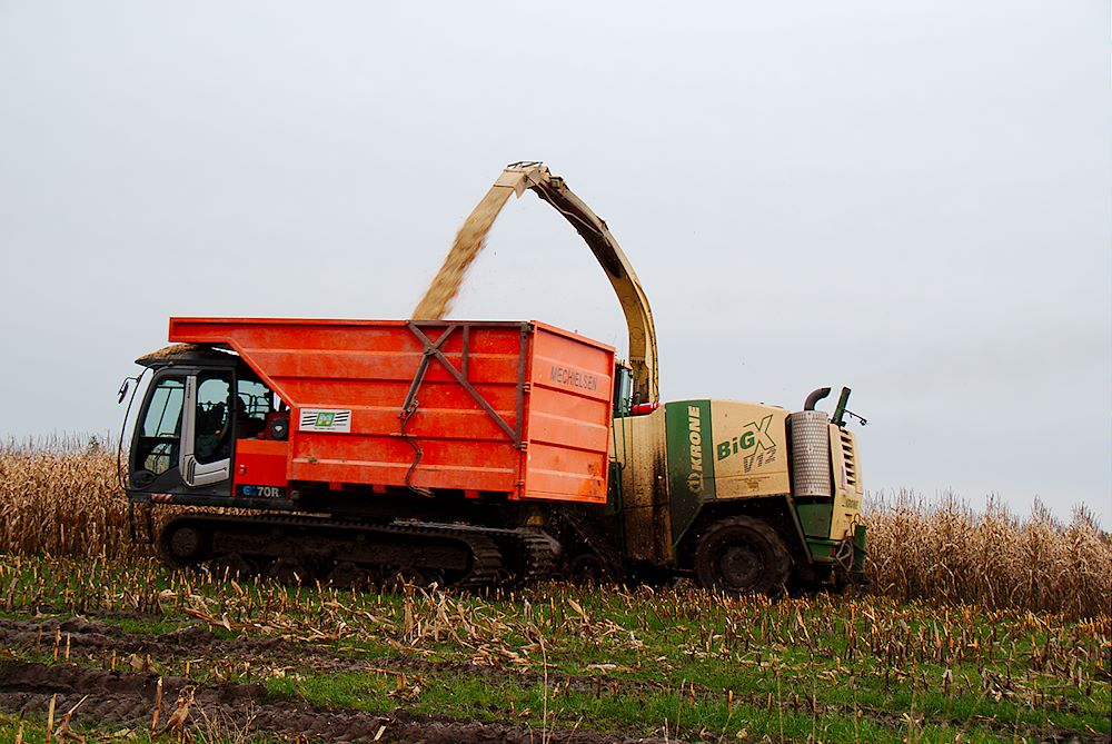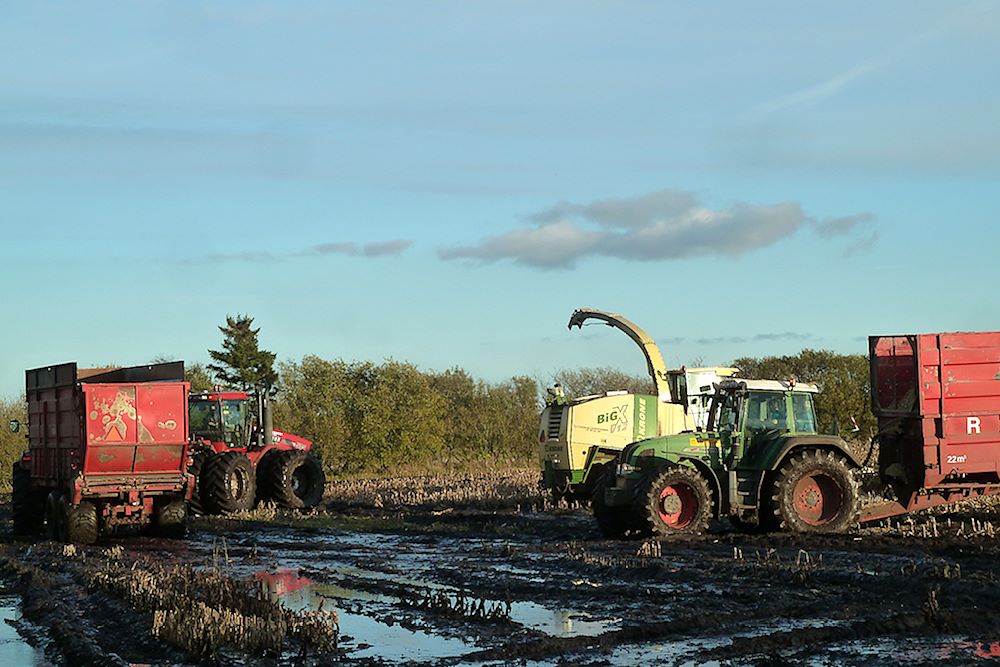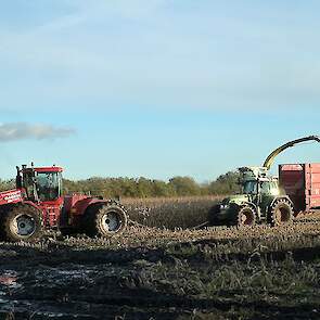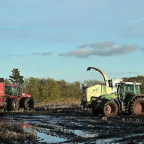 Ook natte oogst in Denemarken bij Skamstrup Maskinstation het Nederlandse loonbedrijf Mechielsen uit Oldehove kwam dit bedrijf nog te hulpe met de rupsdumpers