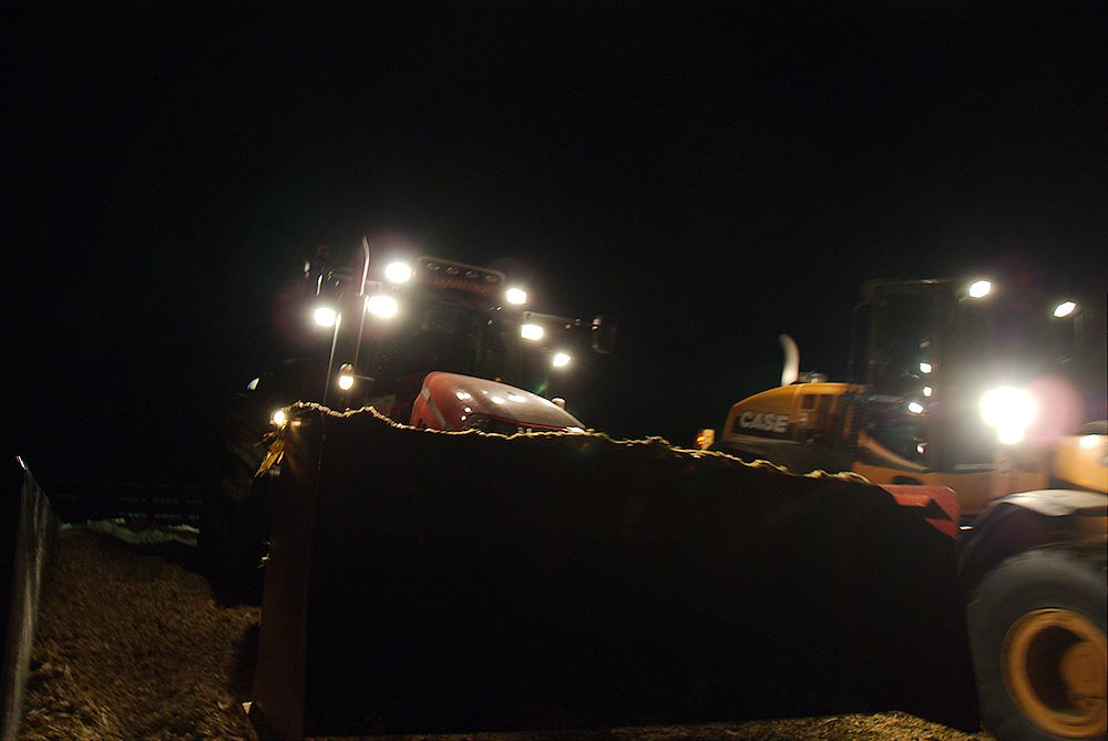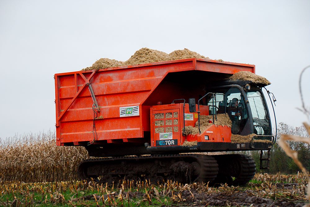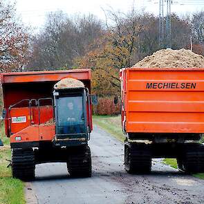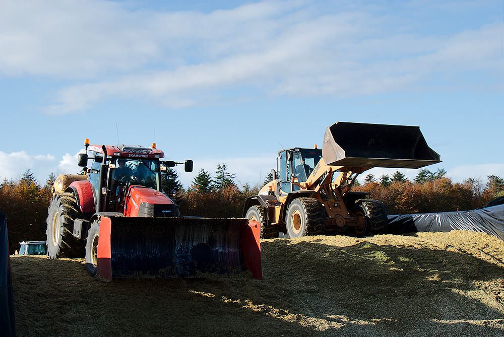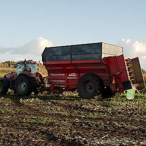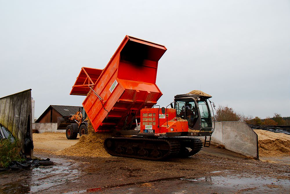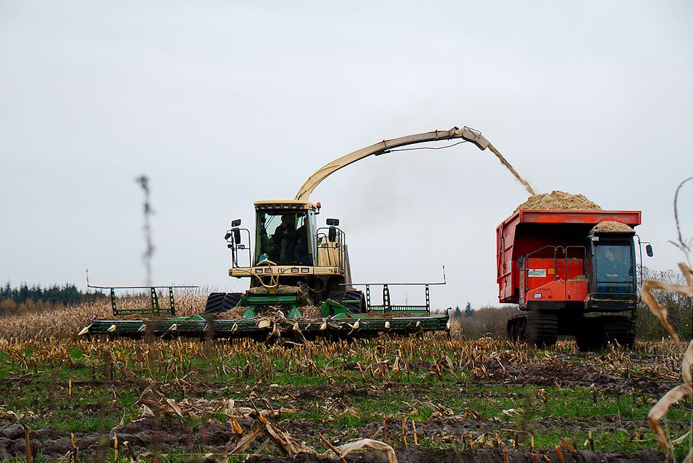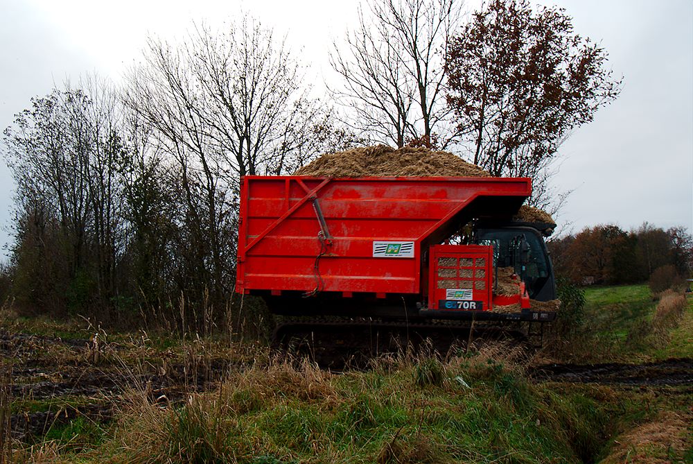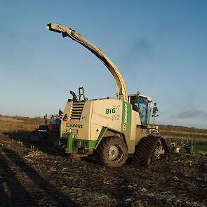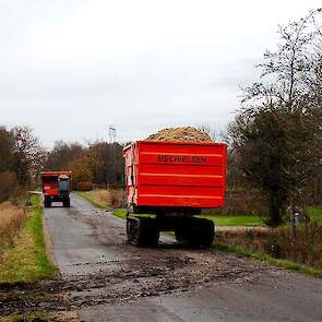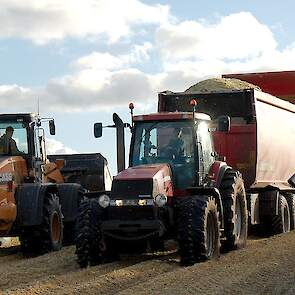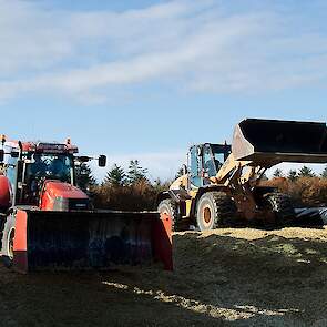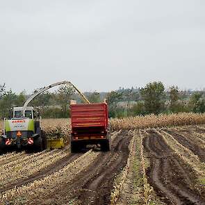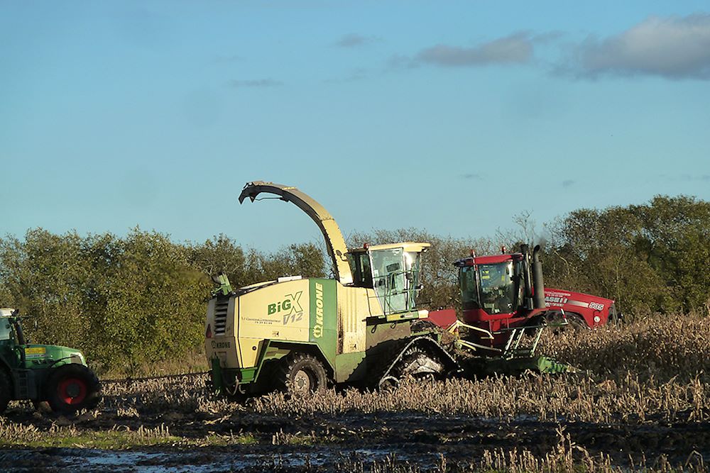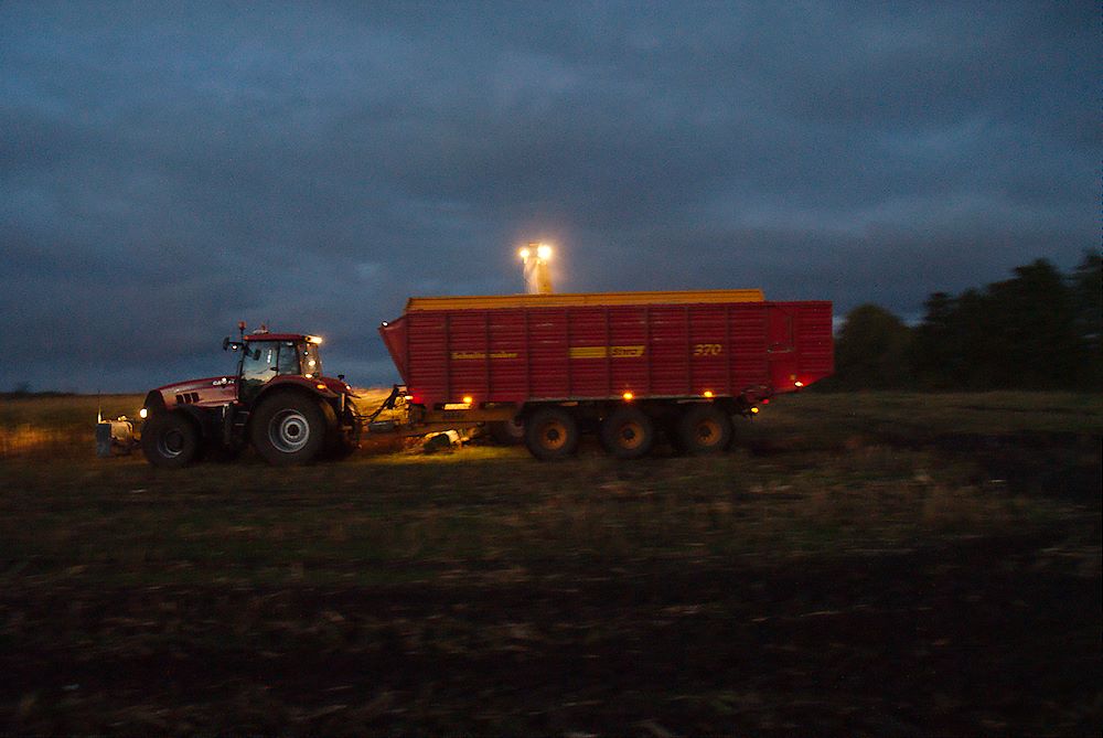 Ook natte oogst in Denemarken bij Skamstrup Maskinstation het Nederlandse loonbedrijf Mechielsen uit Oldehove kwam dit bedrijf nog te hulpe met de rupsdumpers