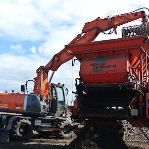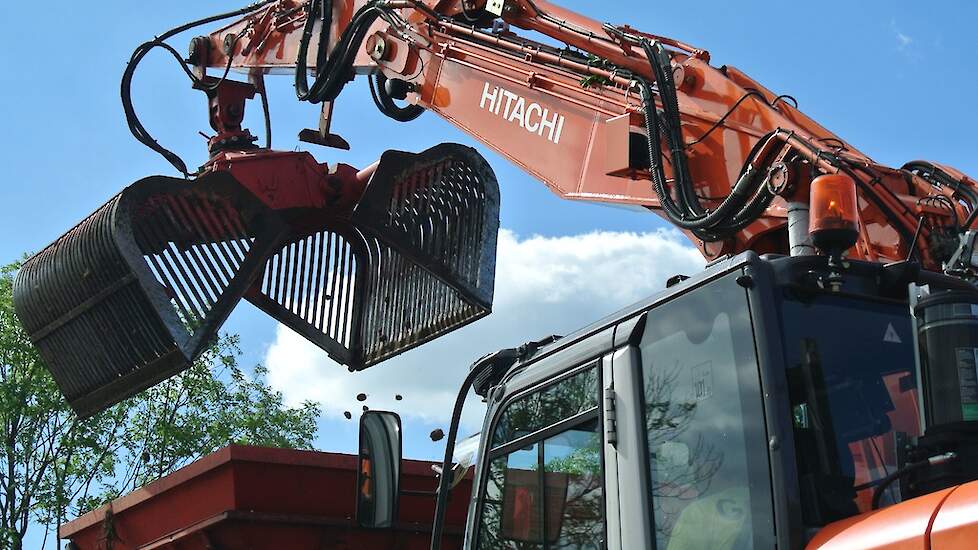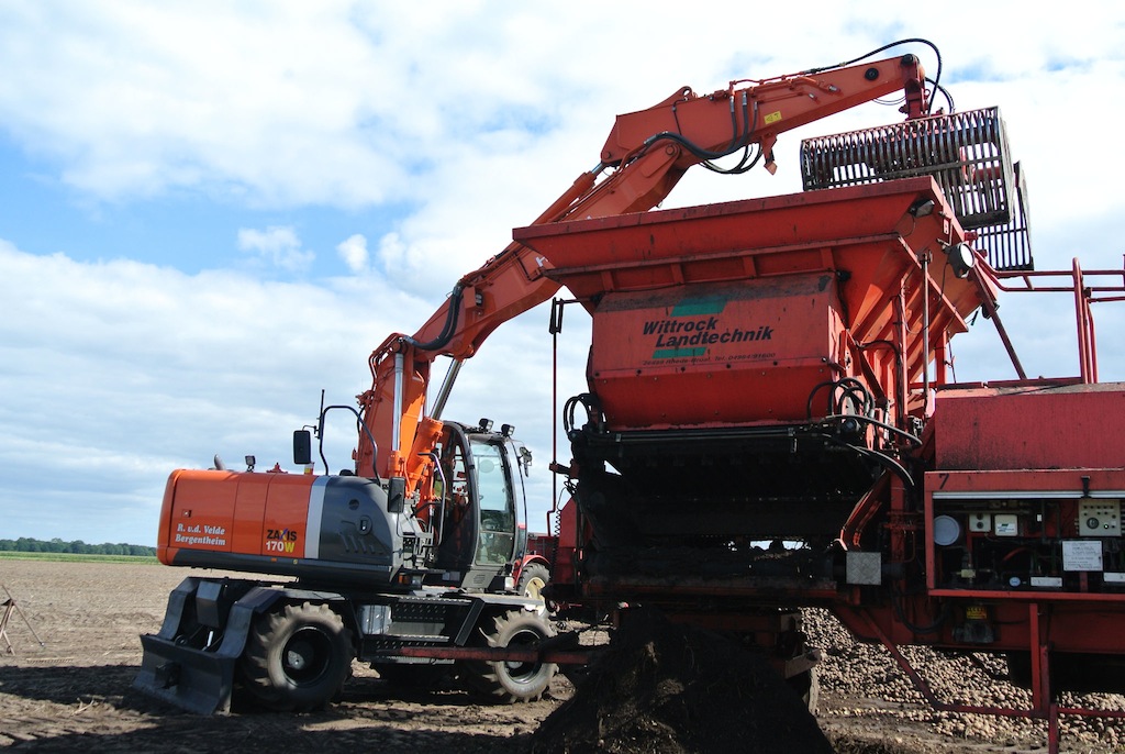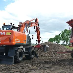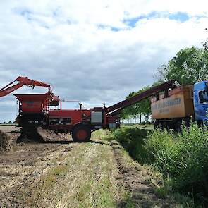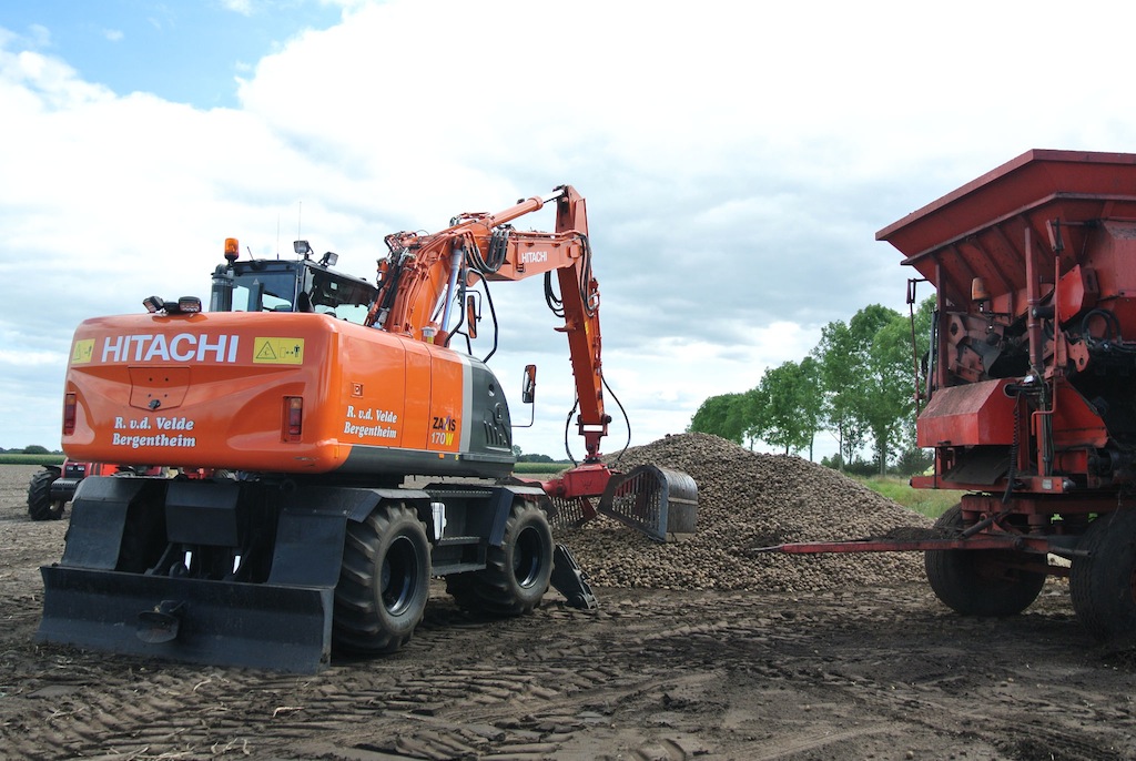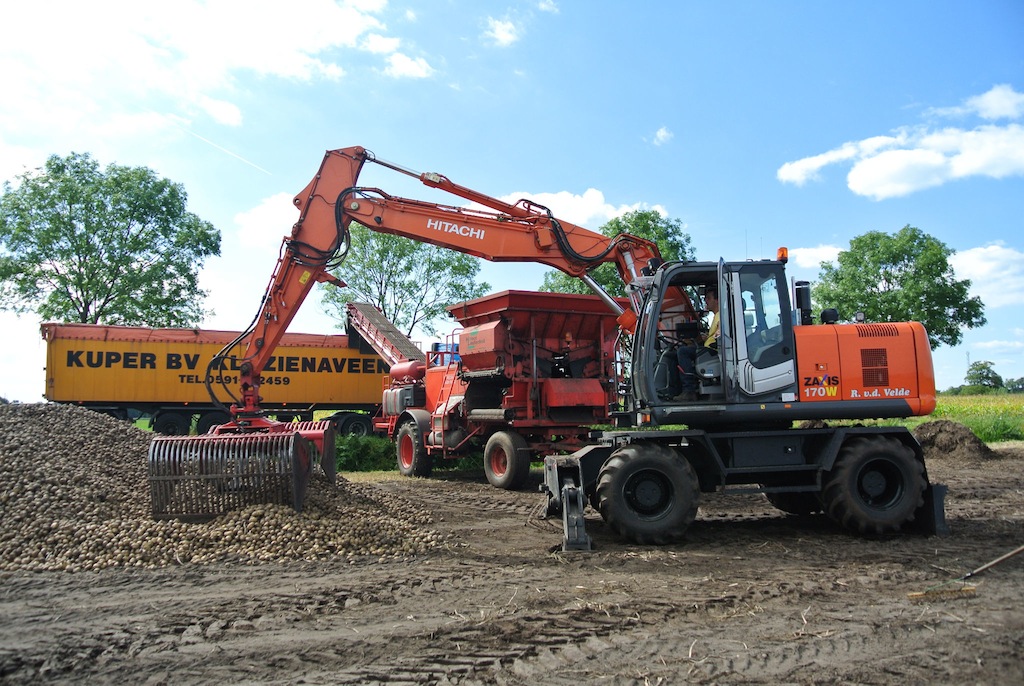Laden van fabrieksaardappelen te Vriezenveen door R. v.d. Velde. Deze aardappelen werden naar Ter Apel gebracht.