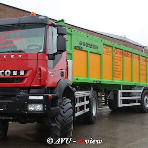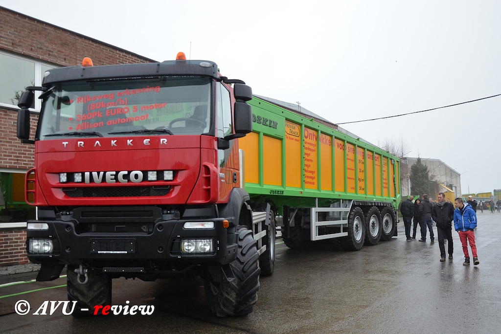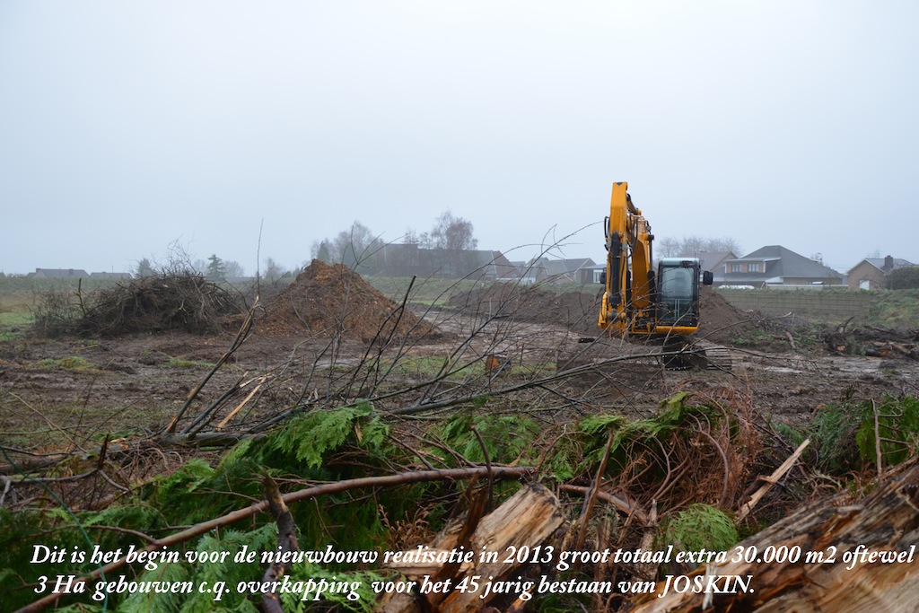 Truckshow op het buitenterrein,althans daar leek het op. Samen met andere machines was de IVECO Trakker van 360 pk wegtransportcombi met een laadvlume van 55 m3 een imposante verschijning. Tevens werd het begin gemaakt voor de nieuw te bouwen hallen groot 3 HA voor het einde van het jaar i.v.m. het 45 jarig bestaan van Joskin.