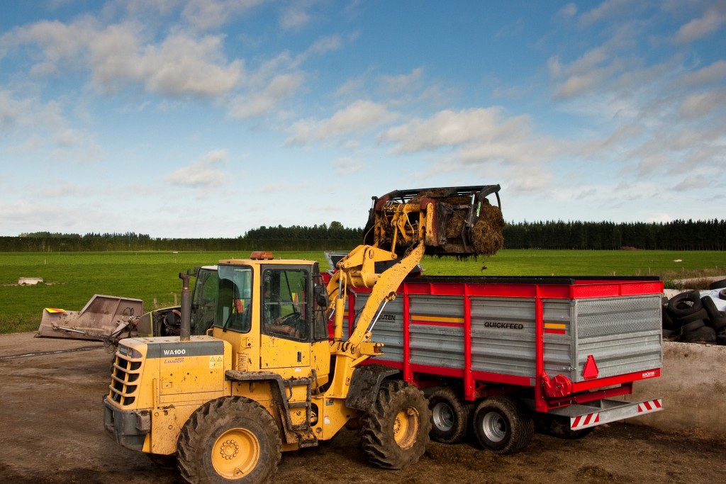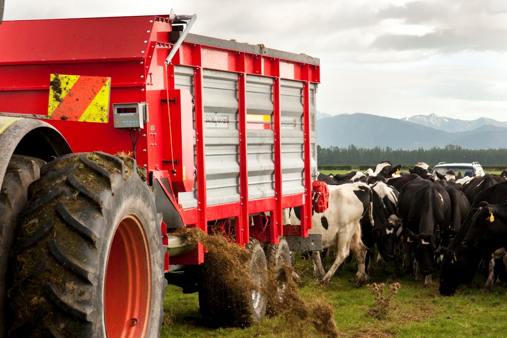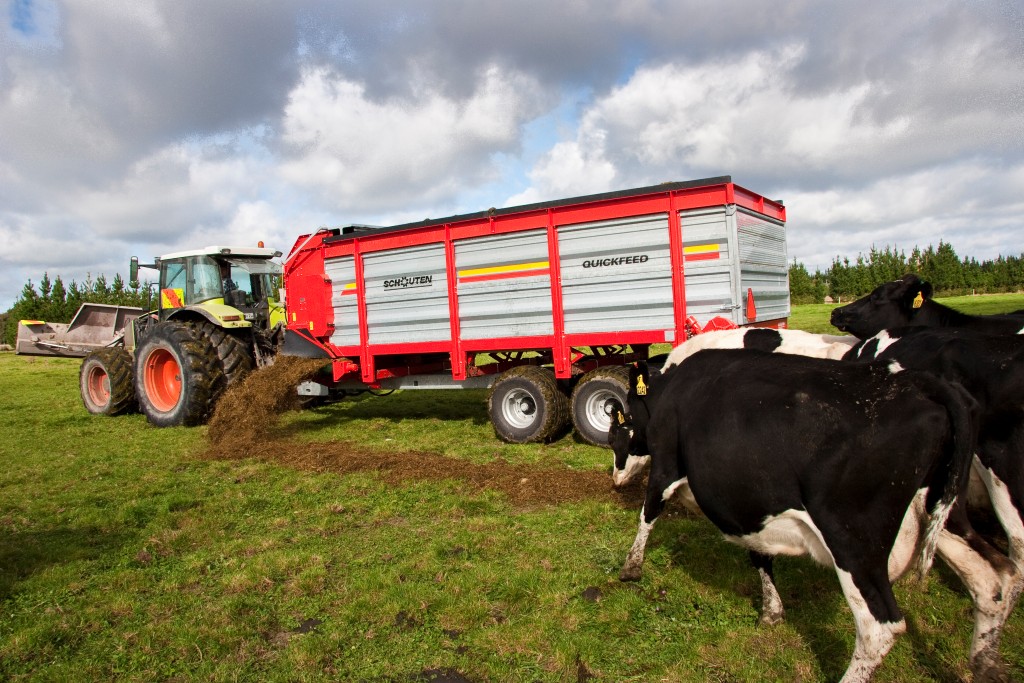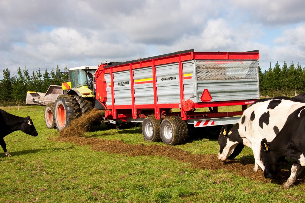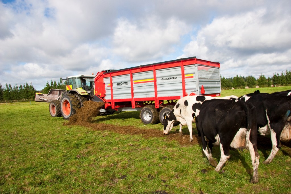 Koeien voeren met schouten Quickfeed VDW210 in Nieuw Zeeland