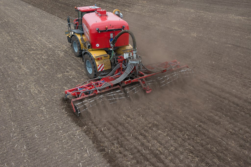 Evers Freiberger XL in de bedrijf bij loonbedrijf Wetering , Den Ham. De bemester is voorzien van sectie-afsluiting aangestuurd door een GPS module/unit.