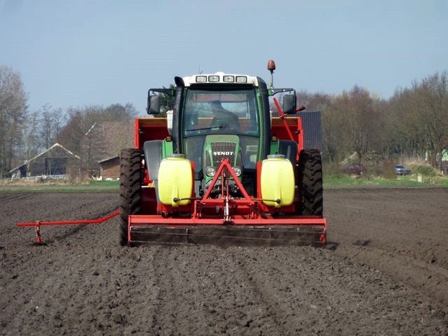 Akkerbouwbedrijf Jan Bos heeft afgelopen week de nieuwe Grimme GL 420 in gebruik genomen. De machine wordt hydraulisch aangedreven en is van veel gemakken voorzien. De Fendt 711 (2003) is voorzien van Trimble Auto Pilot.