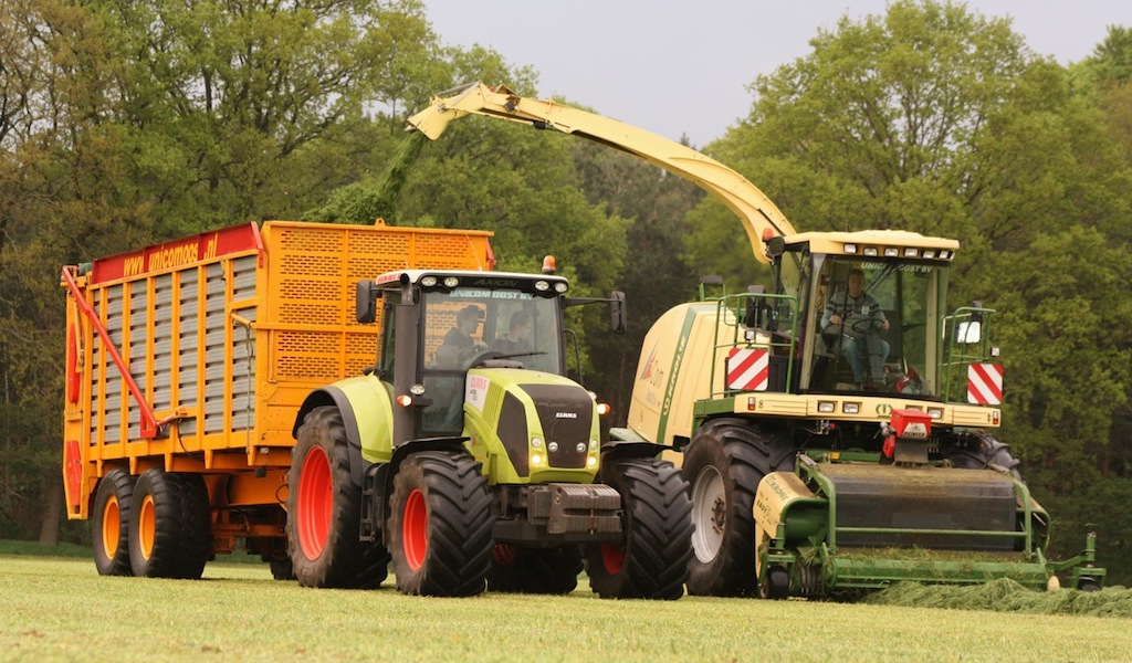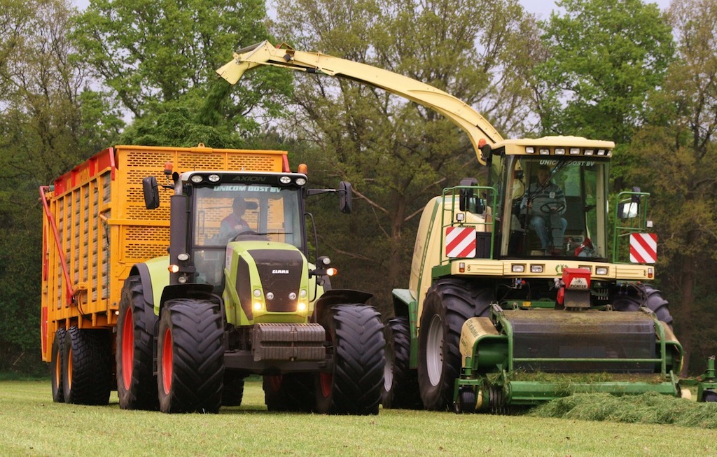 Unicom Oost hakselt eerste hectares gras van 2013