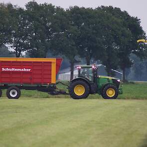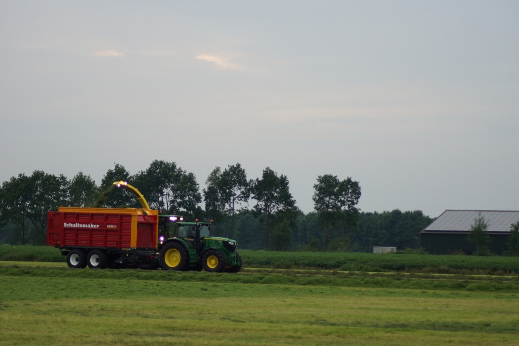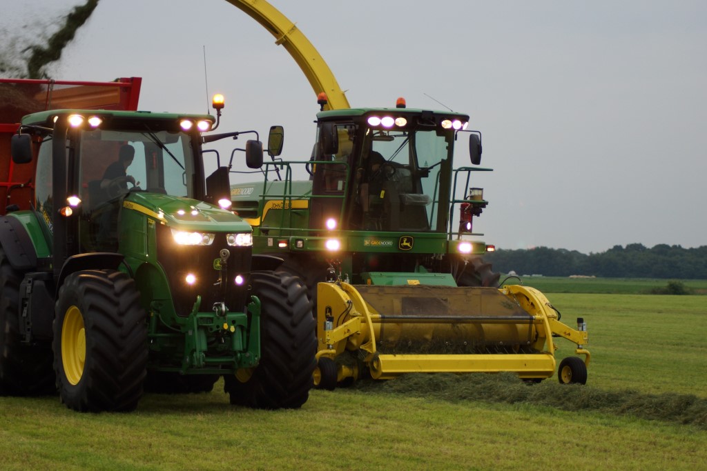 John Deere 7480i Prodrive van Groenoord aan het grashakselen.
