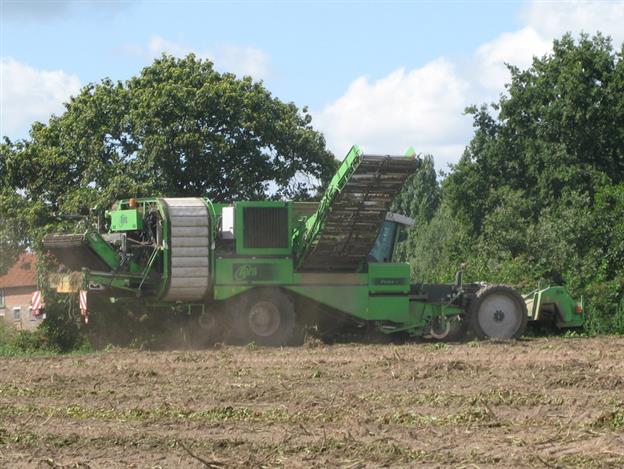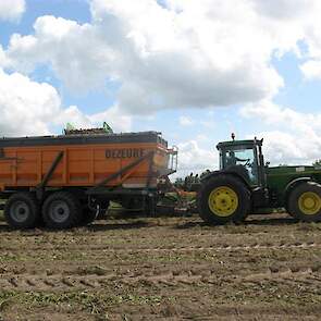 Kwalitatief aardappelen rooien en afleveren door de firma Cattebeke-Moreau België dit alles met een AVR Puma rooiemachine en een John Deere en Dezuere hooglosser