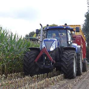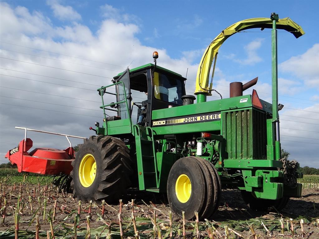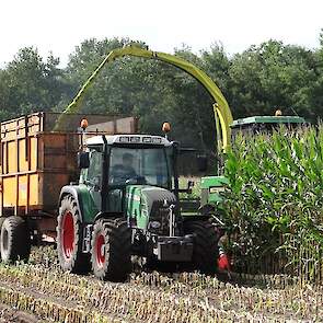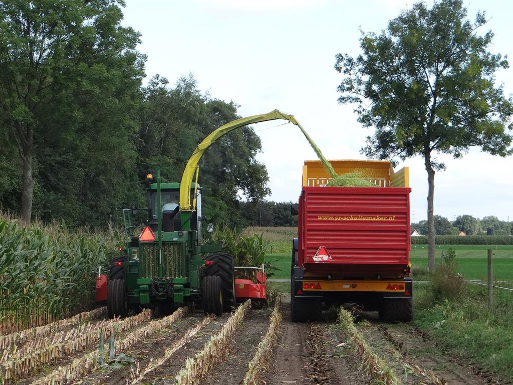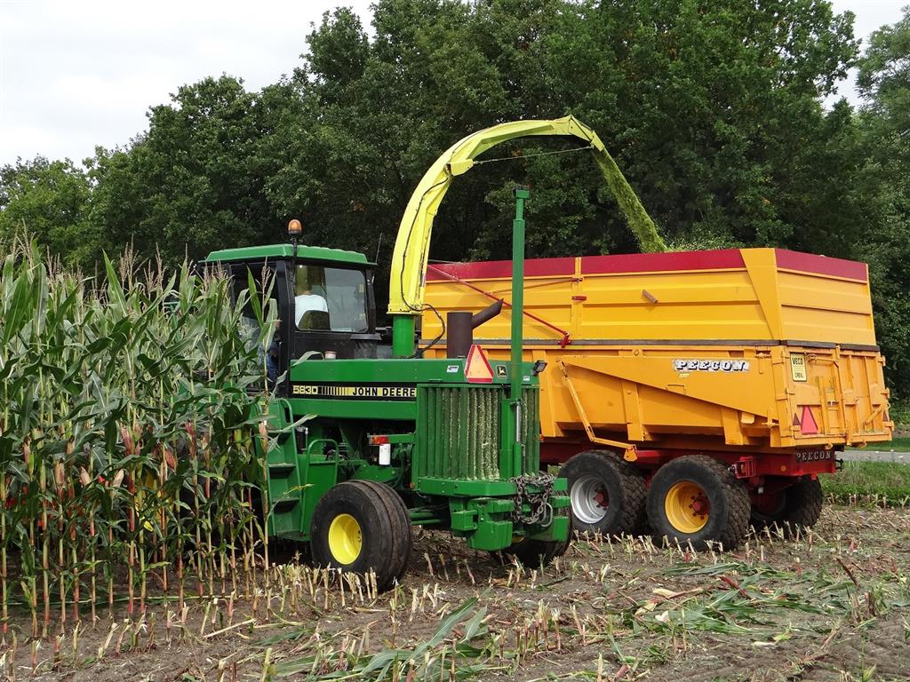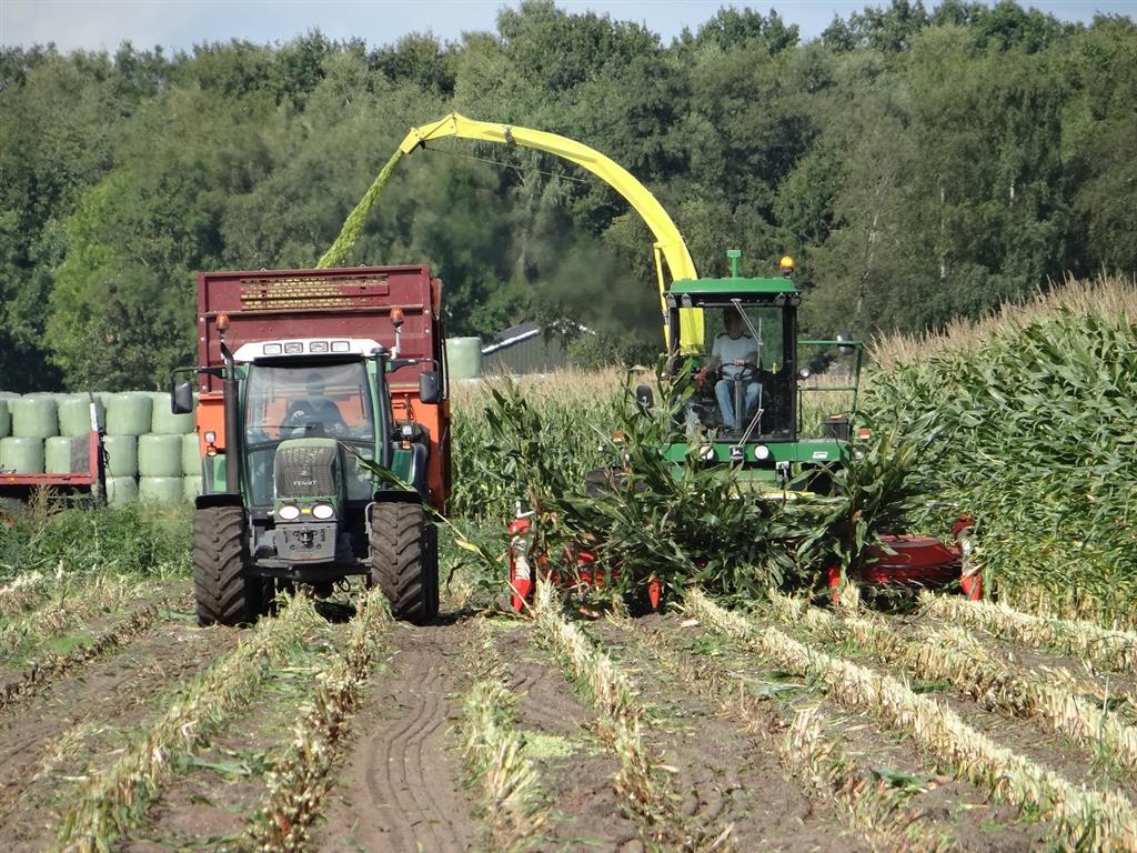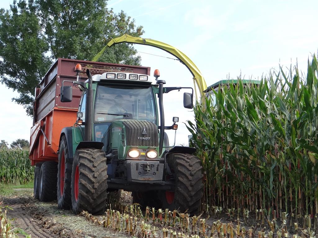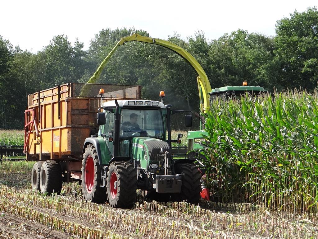 Bloemendaal uit Elspeet aan het maishakselen in Hulshorst met een John Deere 5830, Fendt 301, Fendt 311, Fendt 312, Valtra N91 en een New Holland T7 270