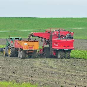 Loonbedrijf Wieringa Bedum aan het bietenrooien voor loonbedrijf Dam Wehe-den Hoorn.