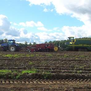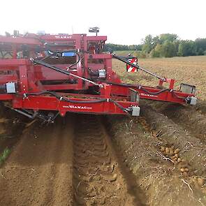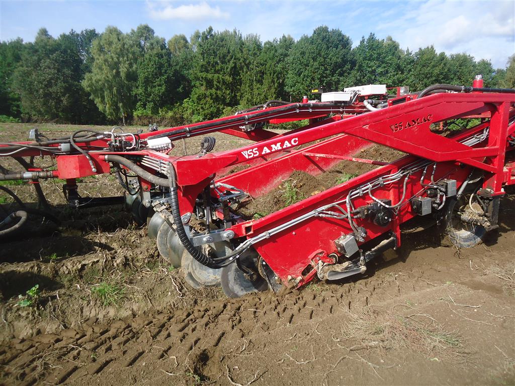 Als de omstandigheden/ vooruitzichten zich goed voordeden ging de voorraad rooier al eerder aan het werk, hierdoor kon de VSS Amac VR 3000 zowel de 4 links als de 4 rechts gelegen rijen in de werkgang van de zelfrijdende ploeger aardappel rooier afleggen zo nam de Ploeger 12 rijen in één werkgang mee.