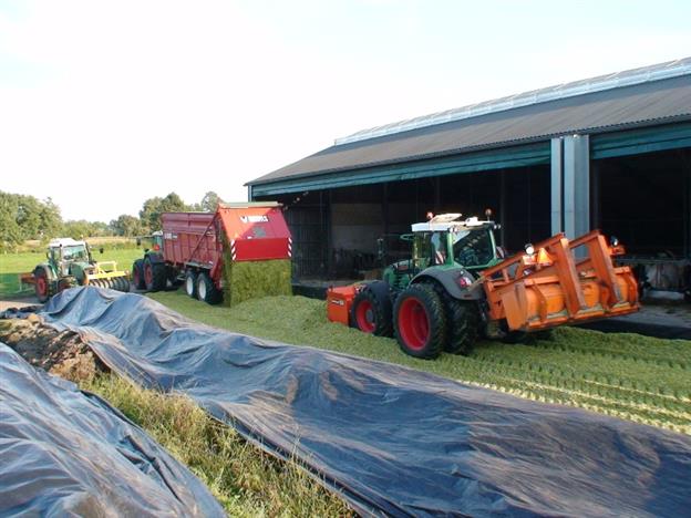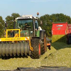 Vorige week is bij Geurs Hengevelde de maïsoogst van 2013 ook begonnen.Dit jaar is de Claas Jaguar 960 hakselaar uitgerust met een nieuwe Kemper 360plus maisbek.Twee keer Fendt 924 met Dezeure silagewagen zorgen voor het transport van de mais naar de kuil.De silagewagens hebben aangedreven assen en kunnen lang doorgaan onder zware omstandigheden.Een Fendt 933 en Fendt 818 zorgen beide voor goede verdichting van de maiskuil met maisschuif en verdichtingswals.Voor meer info, zie de nieuwe website van Geurs: www.geurshengevelde.nl