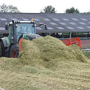 De maisschuif, speciaal voor front-aanbouw, heeft een werkbreedte van max. 540 cm en een schuifhoogte van 135 cm. De zijborden van de zgn. "FK" uitvoering, zijn hydraulisch naar voren klapbaar.